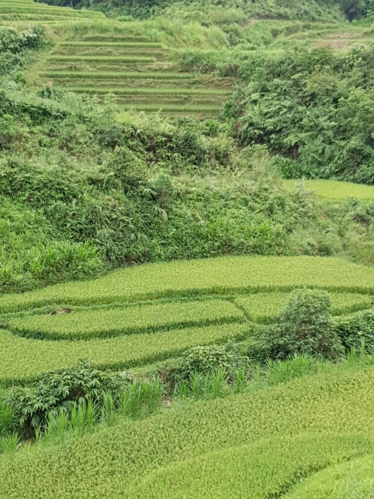 Unterwegs mit den Easyriders Ket und Mel (https://www.easyridersvietnam.com/tour/easy-rider-ha-giang-loop-tour/), Start um kurz nach 9 Uhr, nachdem etwa 25 min alles gut verpackt und verschnürt werden musste. Mehrere Stops (u.a. bei einer Dorfkooprative, die Stoffherstellung vorführt), lokales (preiswertes) Essen, ein Besuch im Dorf einer ethnischen Minorität (H’Mong, ursprünglich aus China), ein kleiner Spaziergang und abends gemeinsam essen…