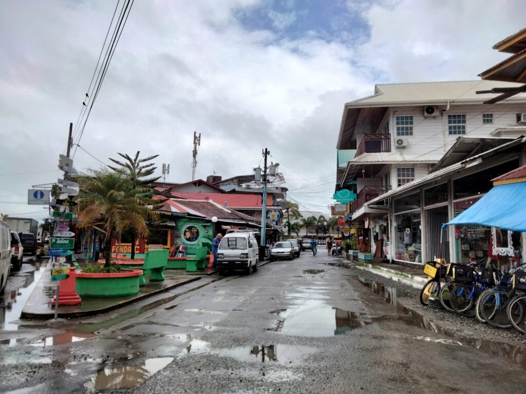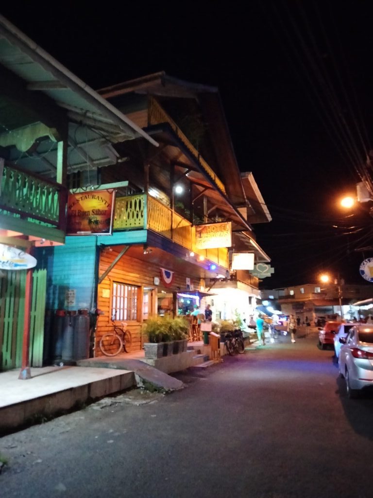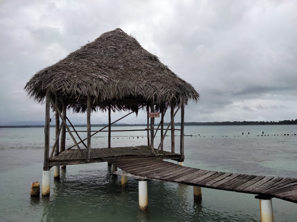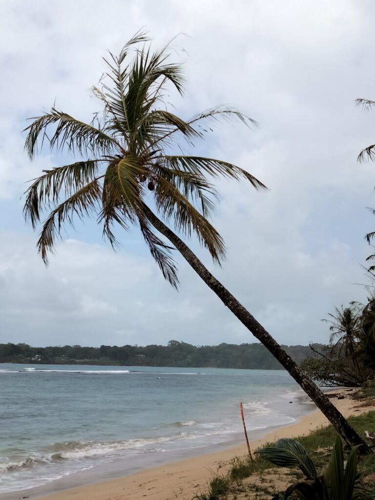 Wieder Regen… Also Trödeln und Hummus für mein Abendessen besorgen, da mein Laden ab 14 Uhr wegen der Vorbereitungen zum Shabbat schließt. Eigentlich habe ich ja keine Lust, doch einfach nur im Hotelzimmer zu bleiben, ist auch keine Lösung. Also besteige ich das Collectivo nach Bocas del Toro, weil sich dieser Ausflug so lohne soll. Nun ja, nein. Aber egal, ich war dort und spazierte bis zur Starfish-Bucht. Die Seesterne konnte ich nicht sehen, denn dafür hätte ich ins Meer gehen müssen. An einem sehr schmalen Strand waren Buden aufgebaut und dahinter lag Dreck im Dschungel. Laute Musik sollte die fehlende Sonne wohl ersetzen und gute Laune verbreiten. Ein paar Leute und Familien mit Kindern schnorchelten wegen der Seesterne. Aber irgendwie war das alles seltsam, für mich so gar nichts. Immerhin sah ich ein Krabbensonnenbad, das sehr plötzlich endete, als ich mich näherte. Sie verschwanden alle wie auf Kommando wieder in ihren Löchern.