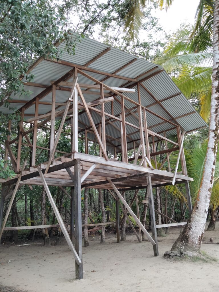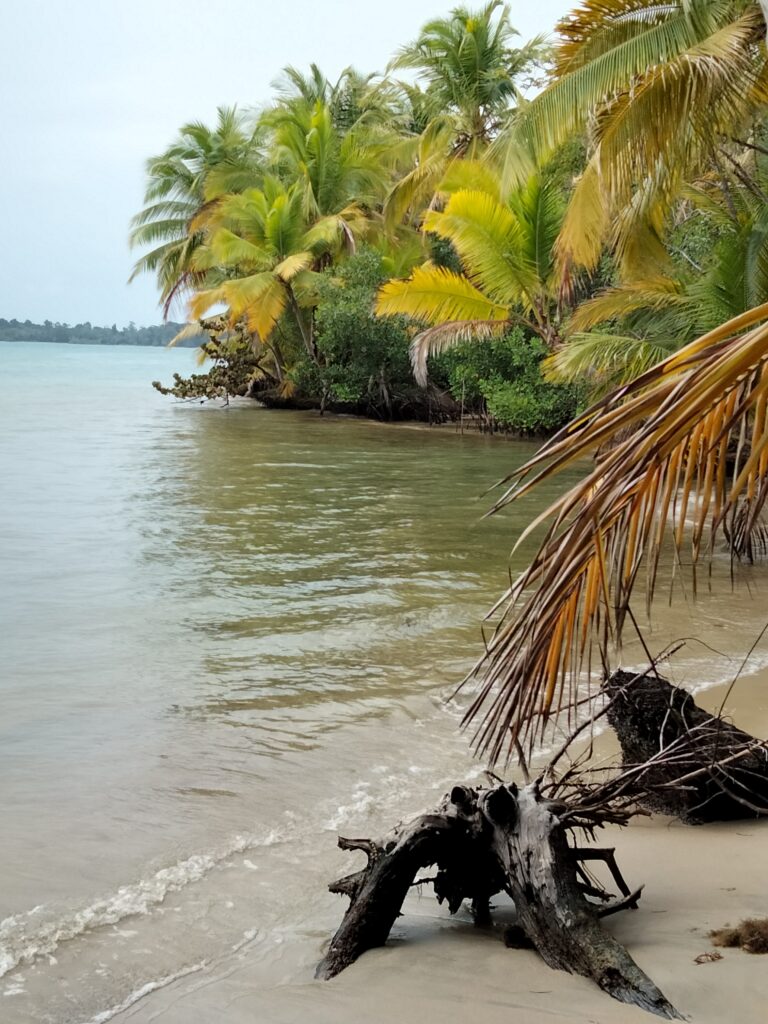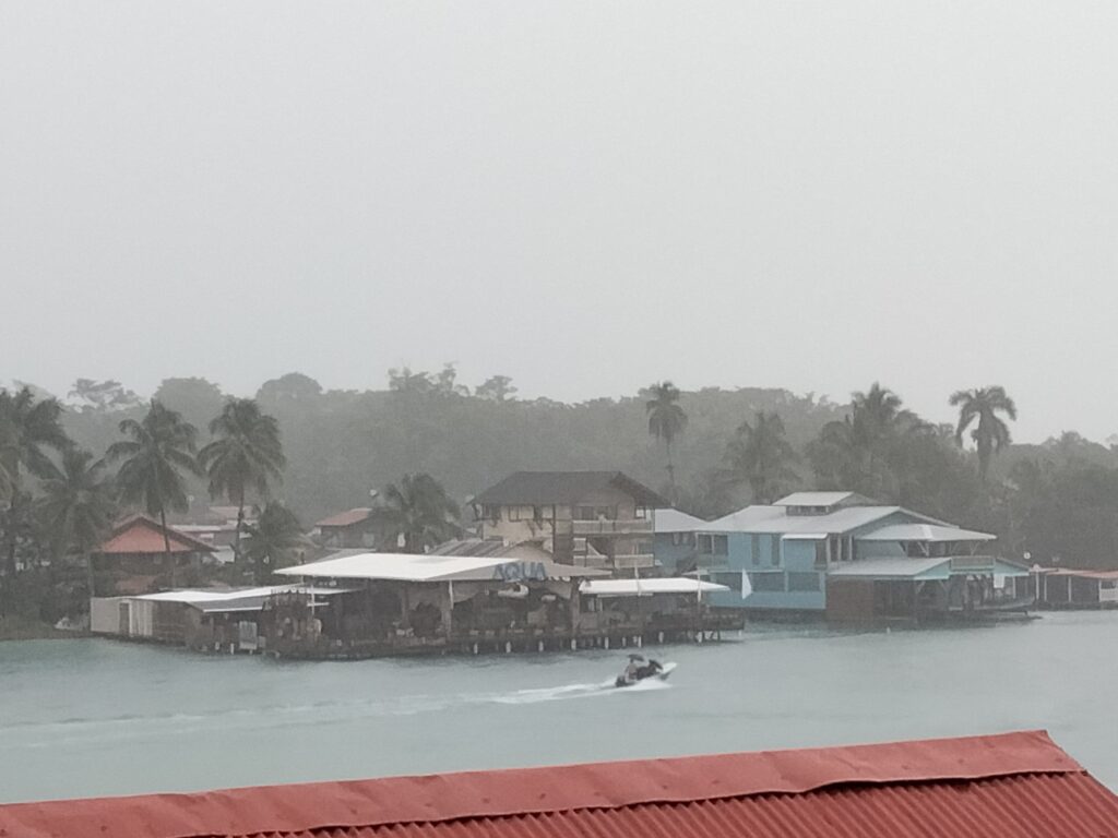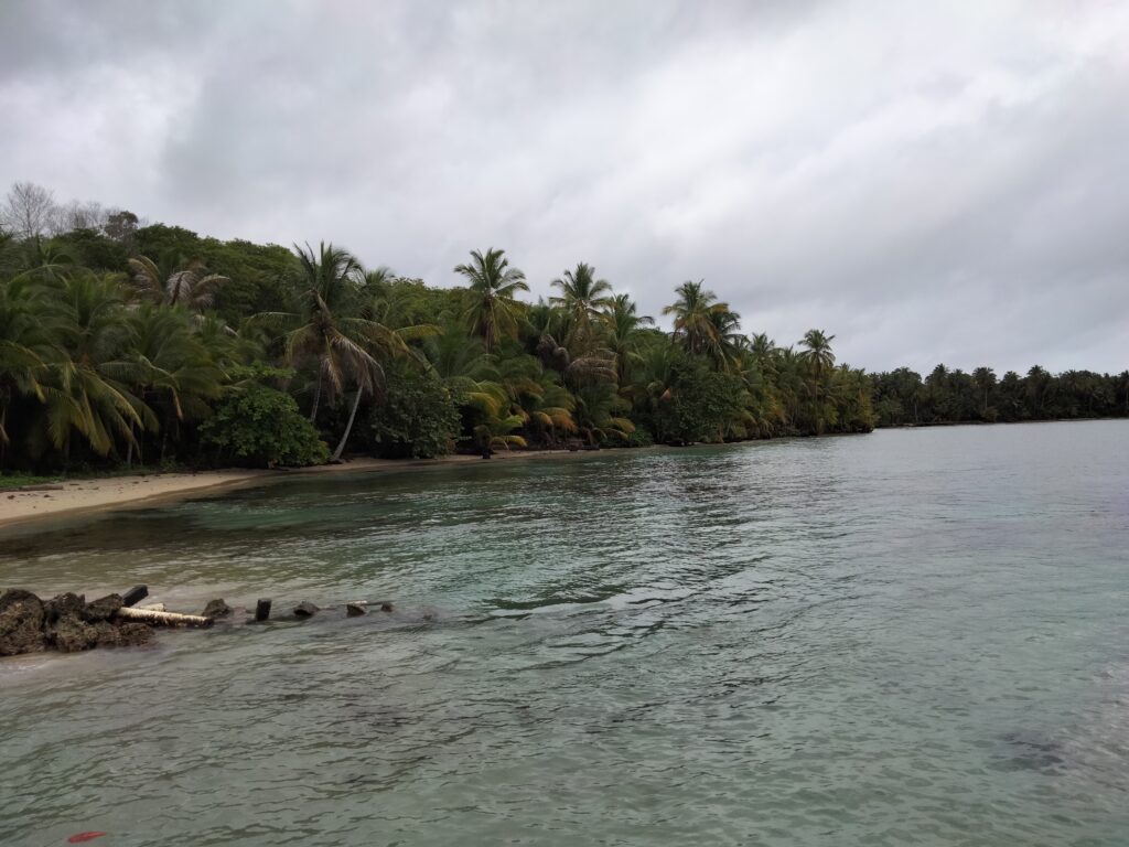 Wieder Regen… Also Trödeln und Hummus für mein Abendessen besorgen, da mein Laden ab 14 Uhr wegen der Vorbereitungen zum Shabbat schließt. Eigentlich habe ich ja keine Lust, doch einfach nur im Hotelzimmer zu bleiben, ist auch keine Lösung. Also besteige ich das Collectivo nach Bocas del Toro, weil sich dieser Ausflug so lohne soll. Nun ja, nein. Aber egal, ich war dort und spazierte bis zur Starfish-Bucht. Die Seesterne konnte ich nicht sehen, denn dafür hätte ich ins Meer gehen müssen. An einem sehr schmalen Strand waren Buden aufgebaut und dahinter lag Dreck im Dschungel. Laute Musik sollte die fehlende Sonne wohl ersetzen und gute Laune verbreiten. Ein paar Leute und Familien mit Kindern schnorchelten wegen der Seesterne. Aber irgendwie war das alles seltsam, für mich so gar nichts. Immerhin sah ich ein Krabbensonnenbad, das sehr plötzlich endete, als ich mich näherte. Sie verschwanden alle wie auf Kommando wieder in ihren Löchern.