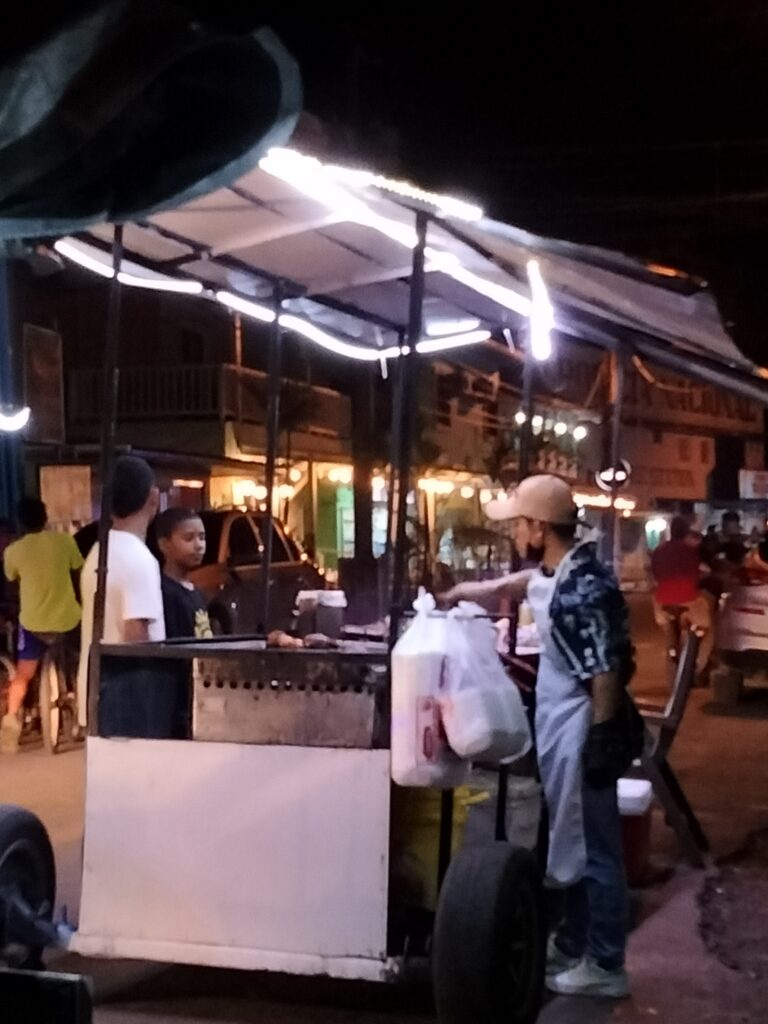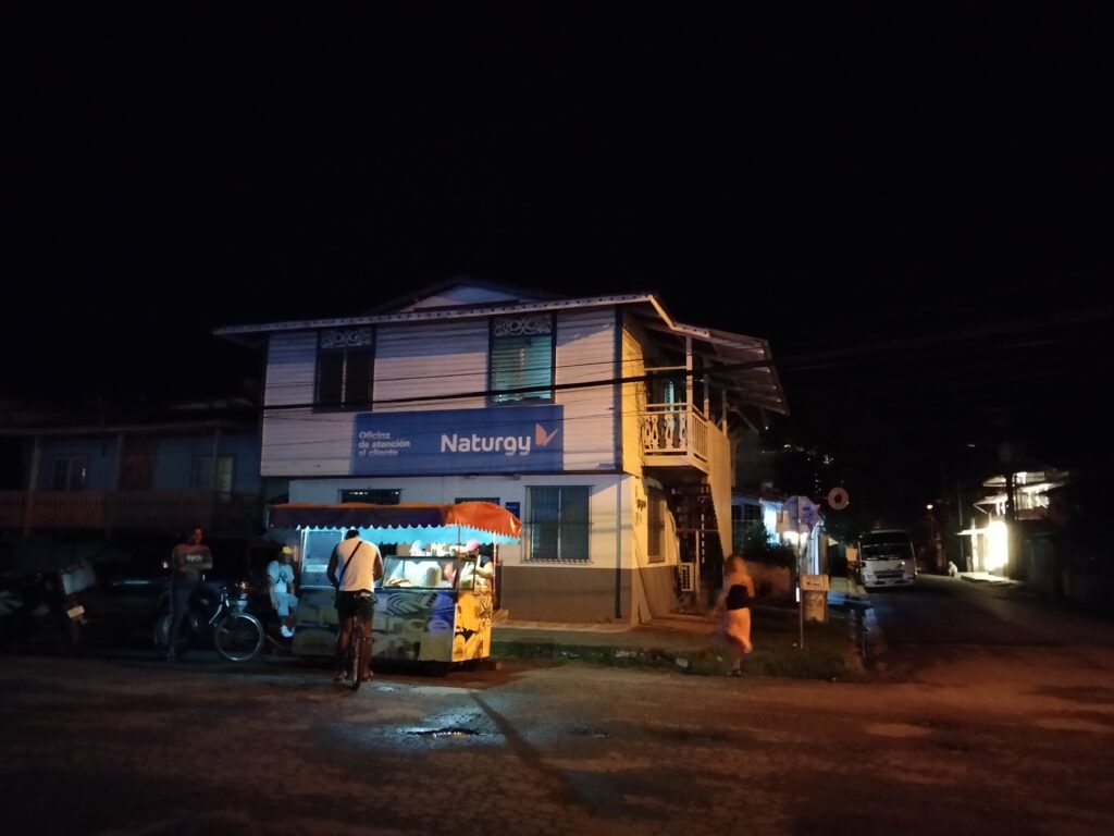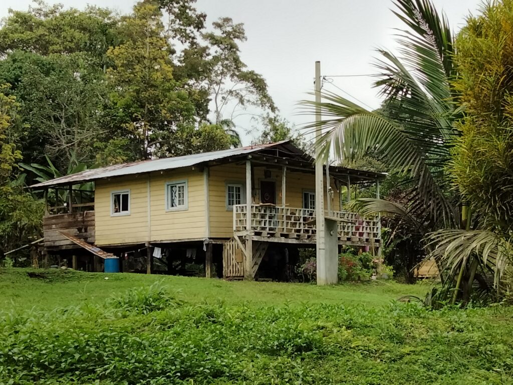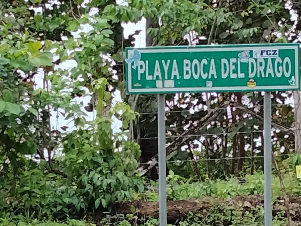 Da ich mich noch kaum bewegt hatte, beschloss ich, einen Teil der 18km Rückweg zu Fuß auf der Straße zurückzulegen. Obwohl das die einzige größere Straße ist, kann man sie keineswegs als stark befahren bezeichnen. Außerdem hört man alle Fahrzeuge bereits sehr früh, da die Straße genügend Löcher und Kurven hat. Oft war es still und ich konnte die Natur rundherum hören. Manchmal kam ein Auto, Motorrad, Quad, LKW vorbei, doch kein Bus. Zumindest nicht in meine Richtung. Nach einiger Zeit fing es dann auch mal wieder zu regnen an. Zuerst nur kurz und schwach, dann Pause und Sonne, dann stärker und trotzdem etwas Sonne. Irgendwann wollte ich endlich von einem Collectivo aufgelesen werden, doch es ließ auf sich warten. Schließlich stand ich wie ein Arbeiter auch an einer Einfahrt unter einem Minivorsprung als Schutz vor dem Regen und wir warteten beide. Er sagte mir dann, dass dies das Haus des Alcalde sei, was Größe und Material (Stein, richtiges Dach) sofort erklärte. Endlich kam das Collectivo und es war eigentlich schon fast voll. Durch einen glücklichen Umstand ergatterte ich einen Platz vorn zwischen Fahrer und Beifahrer auf einem Polster, rückwärts zur Fahrtrichtung. Von da ab hielten wir noch einige Male und immer stiegen welche zu. Es ist schon faszinierend, wie viele Menschen in so einen Minibus hineingehen… Letztlich erreichte ich hungrig Bocas Town und begab mich ins Hotel. Nein, die Insel Bastimentos würde ich mir schenken und schon früher nach Costa Rica weiterziehen als gedacht. Dieses Wetter und die Ruhestörung in der Nacht durch Diskomusik bis nachts um halb fünf brauche ich wirklich nicht. Es gestaltete sich zwar schwierig, eine Unterkunft zu finden, aber dank meiner Flexibilität in der Ortswahl fand ich eine Lodge bei Manzanillo.