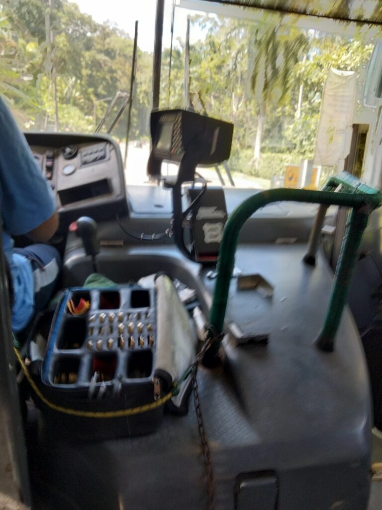 Noch eine geräuschvolle Regennacht in der Lodge. Nur dieses Mal ohne die Brüllaffen. Wahrscheinlich haben sie gestern die nahestehenden Bäume so abgefressen, dass sie weitergezogen sind. Auf jeden Fall waren sie heute morgen nicht zu hören. Dafür war es unglaublich feucht. In der Luft. Mein aufgehängtes T-Shirt hatte sich richtig vollgezogen. Nicht schlimm, dachte ich mir, ich kann es ja trocken tragen. Nach einem gemütlichen Start und einem kurzen Trip zum lokalen Minimarkt stand ich pünktlich vor 10.30 Uhr an der Bushaltestelle für den Bus nach Cahuita. Das liegt etwa 25 km entfernt und laut Fahrplan sind dafür 45min eingeplant. Als der Bus nahezu pünktlich kam, galt es die hohen Stufen zu erklimmen, das Ticket zu erwerben und sich möglichst weit vorne mit dem gesamten Zeug niederzulassen. Die Fahrt dauerte dann etwa 70 min, alles in allem nur wenig Verspätung. 😉