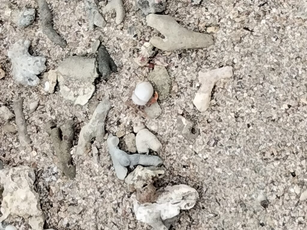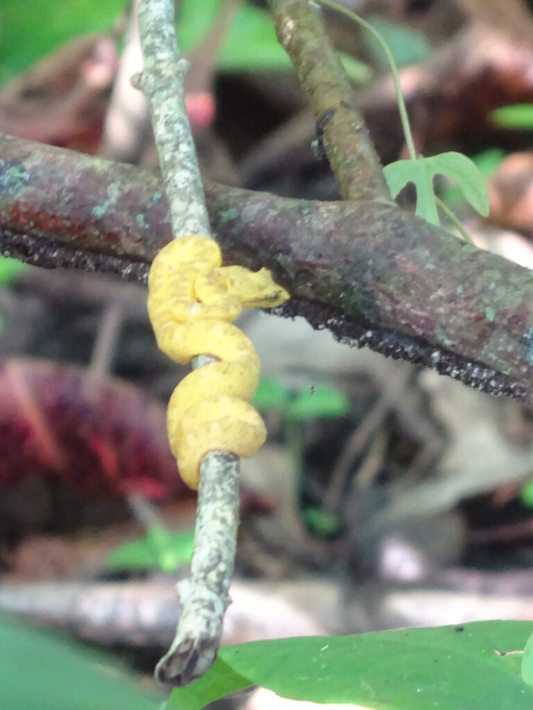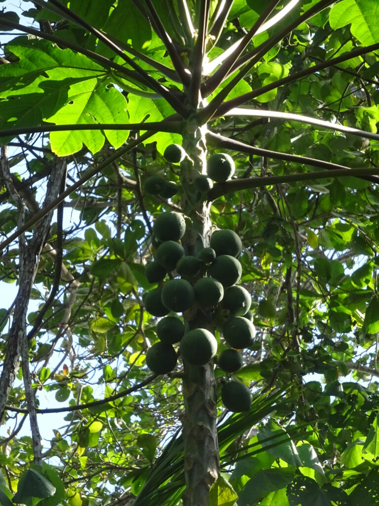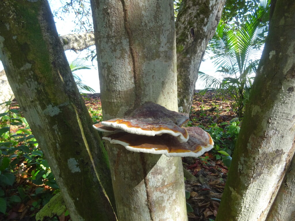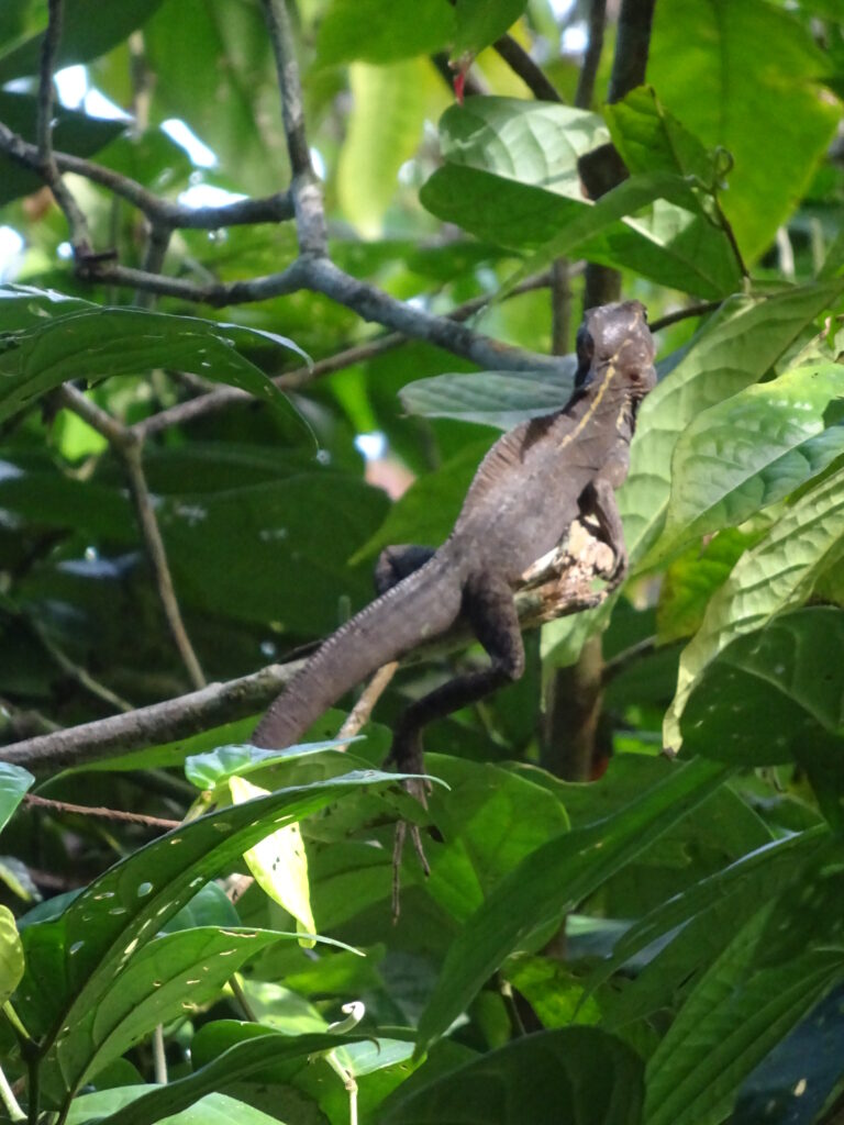 Nach diesem Fiasko bin ich allein weiter. Einige andere geübte Waldtouristen fanden z.B. eine weitere Schlange, wovon ich profitierte. Doch auch die wollten keinen größeren Anhang und ich wollte mich etwas schneller bewegen, um meinen Rücken wieder etwas zu entlasten. Also ging ich zügig bis zum Wendepunkt, an dem ein Korallenriff vorgelagert ist. Da aber auch das Wetter zu dieser Zeit eher trübe war und ich so ganz ohne Frühstück Hunger hatte, machte ich mich auf den Rückweg. Gegen späten Vormittag gab es dann wieder einen Guanabanasaft mit einem vegetarischen Wrap und etwas Latein. 😉