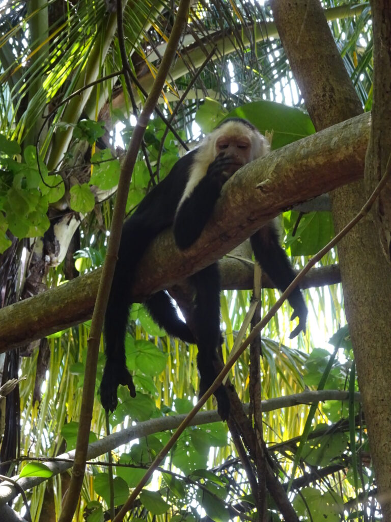 Ausgeschlafen und entspannt ging ich mein Ticket für den Bus nach San Jose für morgen kaufen. Dann wollte ich mir einen Crepe gönnen, doch leider war mein Stammlokal voll. Also bin ich ohne Frühstück (eine Banane gab es) zum Nationalpark aufgebrochen. Eigentlich wollte ich dort heute nur etwas herumhängen, doch ich traf eine kleine deutsche Reisegruppe mit zwei deutschen Reiseleitern, einem Ehepaar, das Naturreisen selbständig anbietet. Erst stand ich dabei, aber ohne Erlaubnis immer an ihnen zu kletten, wäre nur peinlich geworden. Daher habe ich gefragt, ob ich zuhören dürfte, weil sie einfach so viel wüssten und erklärten. Sabrina war aufgeschlossen und die sechs Gäste gliederten mich auch bald ein. Wir sind die gesamte Tour im Park gelaufen, nach dem ersten Drittel ist Sabrina zurückgegangen, um den Bus zum anderen Ausgang zu befördern. Ab da hat dann nur noch Stephan die Tour geführt und alle meine Fragen beantwortet. Aber auch einer der Reisenden hat mir einiges erklärt – es ist offensichtlich Biologe. Alle älter als ich, aber ziemlich fit und unkompliziert. Das war menschlich und tierisch und pflanzlich ein fantastischer Tag.