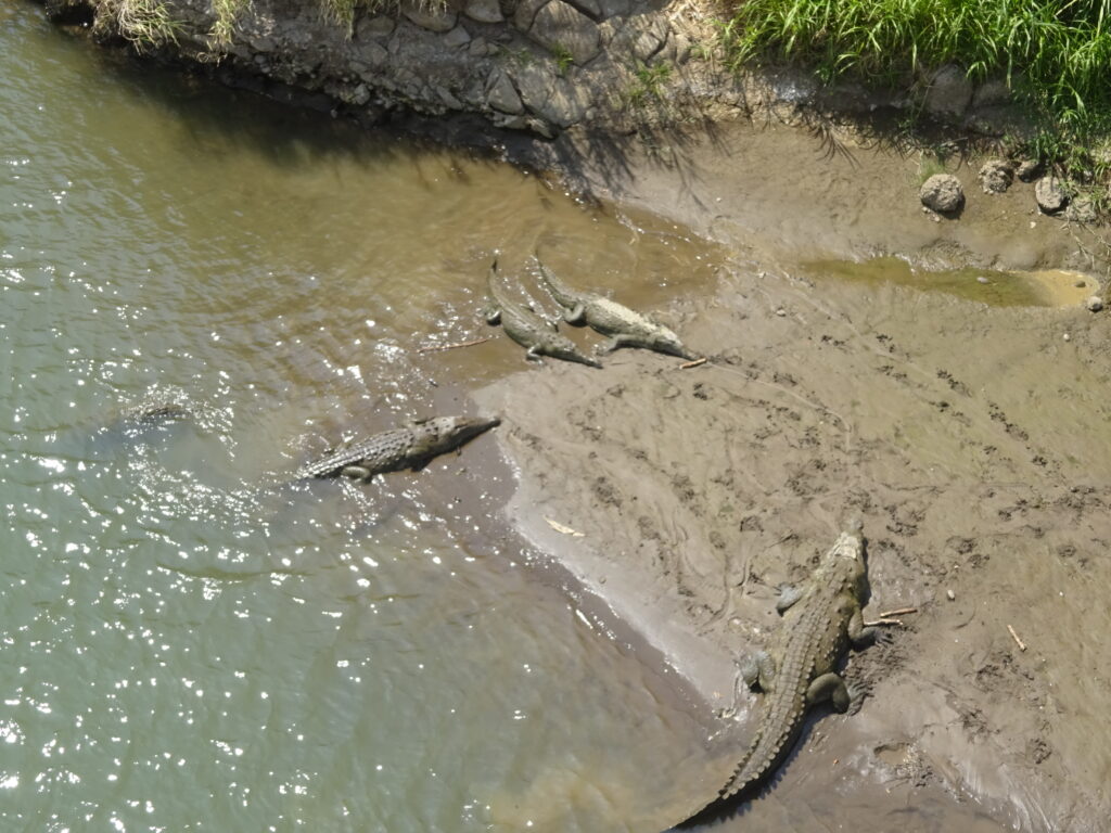 Im Anschluss führen wir 6,5 h durch Costa Rica (über kleine Straßen bisweilen, weil die Autobahn dicht war), um schließlich in La Fortuna am Fuße des Vulkans Arenal anzukommen. Auf dem Weg nahmen wir an der sog. Krokodilbrücke noch ein paar Fotos von Krokos mit, aber dann hieß es Augen zu und durch mit der Fahrt.