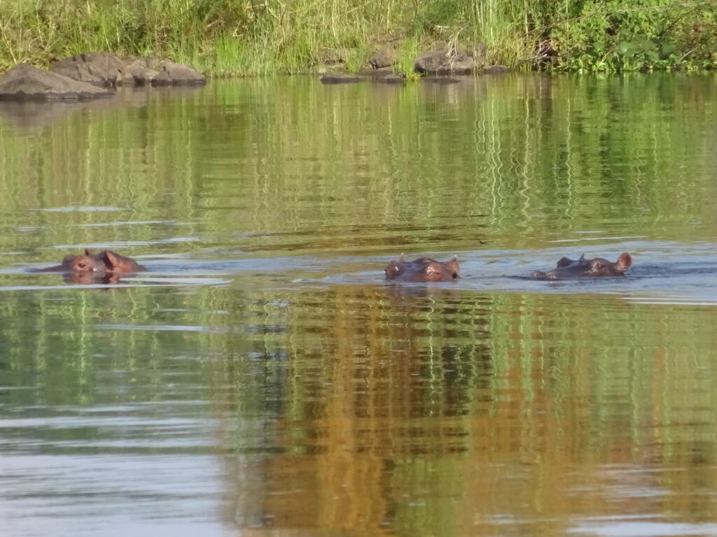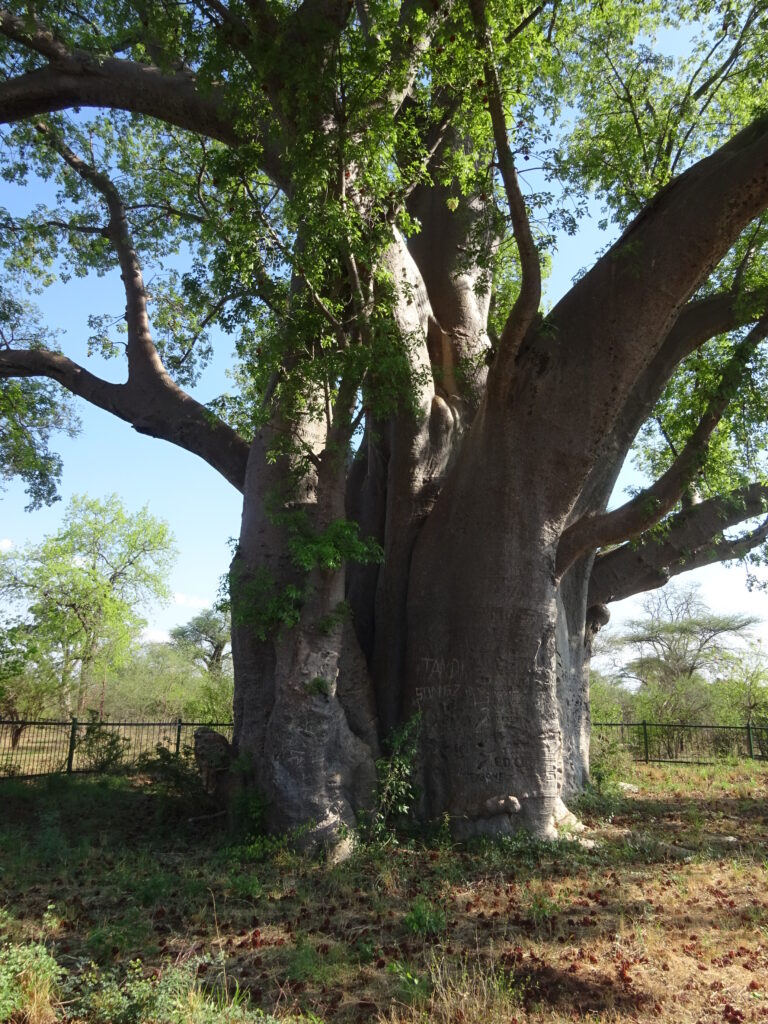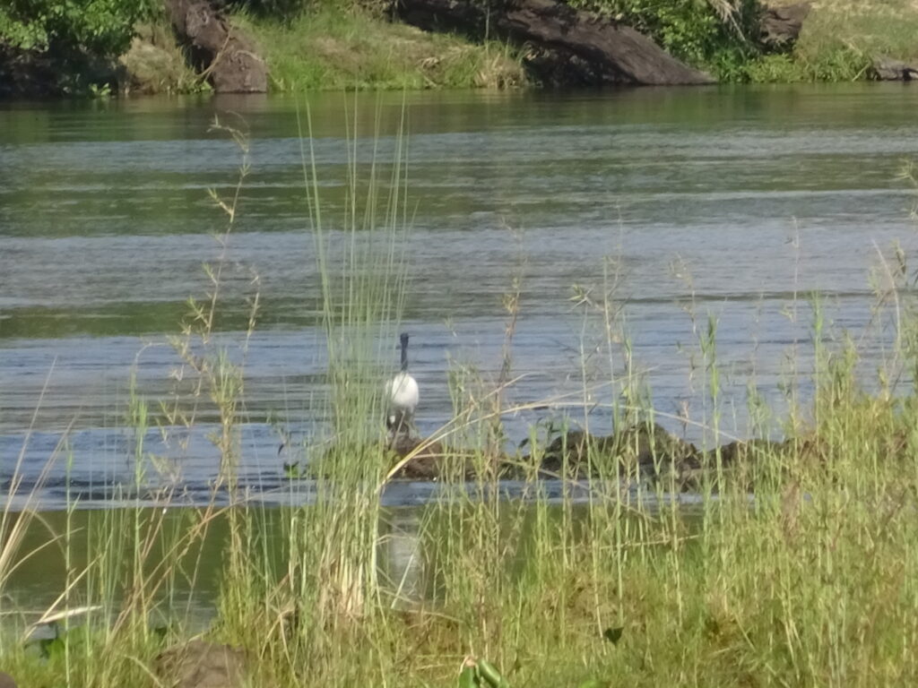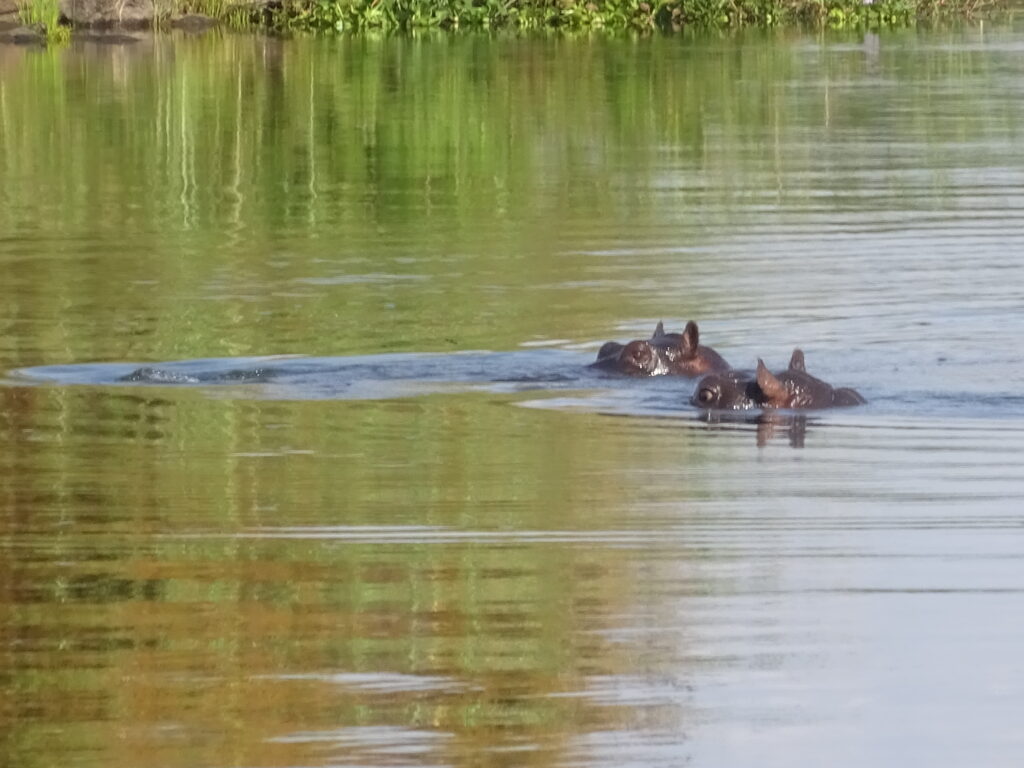 Der Guide Tanaka und der Fahrer Lawrence erwarteten uns vorbildlich mit Schild und sammelten nahezu alle Weißen (ab einem gewissen Alter) ein. Dann wurden wir in einen Minibus (17 Plätze) mit Anhänger für das Gepäck verfrachtet und zum Check-In im Hotel befördert. Vor dem Losfahren gab es noch ein paar kurze Fragen und Antworten für den heutigen und den morgigen Tag, was zeigte, dass sich hier noch einiges einspielen muss. Wahrscheinlich sind auch die Erfahrungswerte der Teilnehmer hinsichtlich derartiger Reisen recht unterschiedlich. Mal schauen, wie es werden wird… Nachdem ich meine Sachen im Zimmer abgestellt und kurze Klamotten angezogen hatte (um die 30 Grad im Schatten), ging ich los auf einen Spaziergang. Dieser sollte eigentlich nur zum Supermarkt führen, um Wasser aufzufüllen. Doch dann dachte ich mir, ich könnte mir ja mal Victoria Falls ansehen. Beim Schlendern wurde ich schnell von männlichen Verkäufern angequatscht, aber sie konnte ich freundlich zurückweisen. Und dann war auch gut. Einmal kam mir ein freundlicher Straßenverkäufer unter, der mir anbot, mir den Sambesi und die kostenfrei zugängliche Region um die Victoriafälle zu zeigen. Er schien ganz ok zu sein, weswegen ich mit ihm ging. Es hat sich auch wirklich gelohnt. Wir unterhielten uns beide radebrechend auf Englisch. Dabei erzählte er (nickname: Jojo) etwas von seiner Lebenssituation und stellte mir neugierige Fragen (das Übliche: woher? Status? Beruf? Etc.). Er erklärte, soweit wir einander verstanden, und führte mich in einem großen Bogen herum. Dabei kamen wir zum Sambesi, der zurzeit recht trocken ist (s. die vielen freiliegenden Steinblöcke im Flußbett). Dort gibt es auch Krokodile, die wir leider nicht antrafen. Dafür habe ich aber meine ersten authentischen Nilpferde (Hippos) gesehen, die gerade gemütlich badeten. Zwischendurch kam am Ufer auch eine Gruppe mit männlichen, jungen Chinesen vorbei, bei denen Jojo gleich seine Sachen (Salatschüsseln aus Holz, Simbabwe-Währung) zu verkaufen versuchte. Leider ohne Erfolg. Sie hatten aber auch kein Interesse an den Tieren, nur rauchen und ein paar Fotos… Als sie weg waren, zogen wir auch weiter: zum größten Baobab-Baum der Gegend. Dort gab es gleich etliche Händler, die mir etwas verkaufen wollten, allerdings wollte ich nichts kaufen. Interessant war es trotzdem, weil ich mich bei dem einen – angeblich Jojos Bruder – über Material und Preis in Relation zur Arbeitszeit informieren konnte. Danach war mir endgültig klar, dass und wieviel ich Jojo für seine Zeit mit mir geben würde (15 $). Er hatte in unseren 2,5 h nichts verkaufen können und mir war er eine Hilfe. Arbeitszeit muss entlohnt werden – das habe ich gerade neulich zu meinem eigenen Vorteil gelernt.