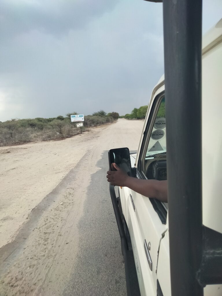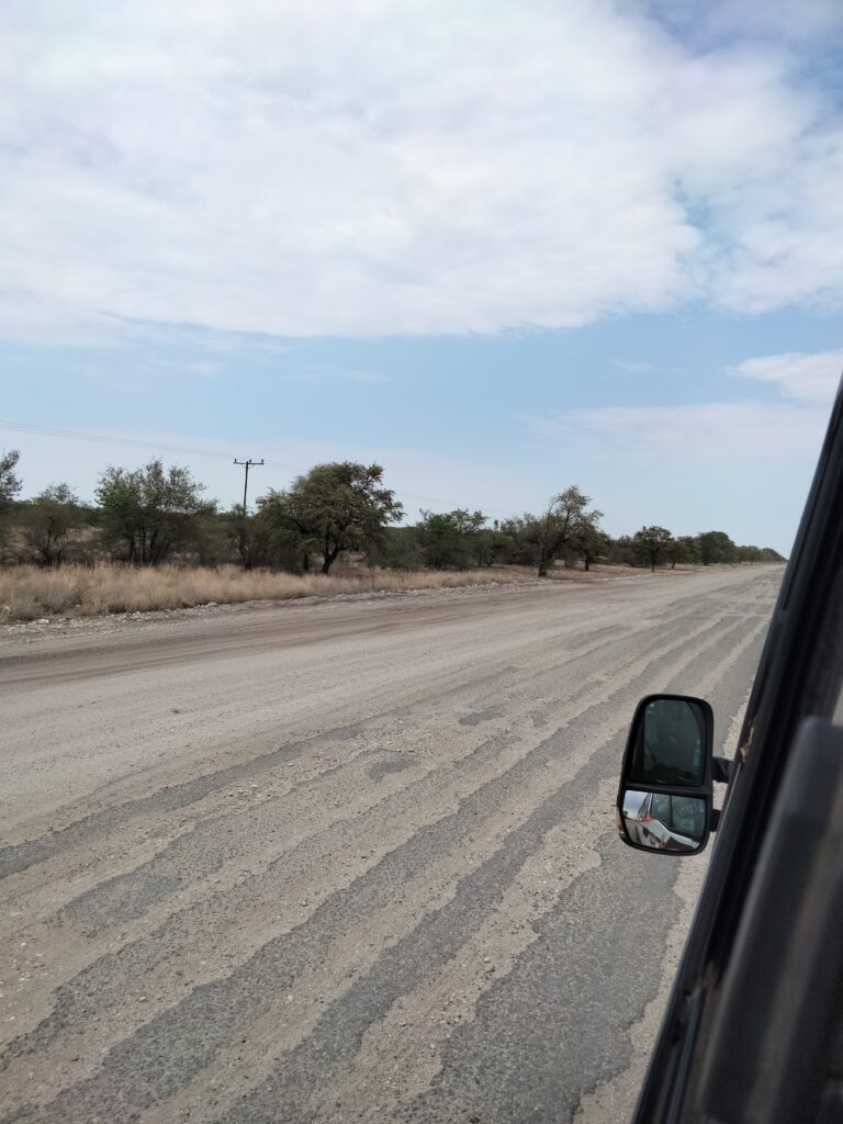Um 7.15 Uhr verließen wir mit dem offenen Geländefahrzeug wieder die Adventurelodge, um uns auf die lange Reise quer durch Botswana zu machen. Heute wollten wir bis Nata (50 km) und dann weiter 310 km bis Maun, südlich am Okavangerdelta gelegen, zurücklegen, dort Wasser kaufen und auf die bereitstehenden 4×4 Jeeps umsteigen. Auf der Fahrt durchfuhren wir wieder Nationalparks und lernten vor allem sehr unterschiedlich beschaffene Straßen kennen. Bei manchen Abschnitten musste Lawrence ziemlich kurven, um uns nicht in eines der großen Schlaglöcher zu bugsieren. Dabei passierten wir auch einen Ausläufer der Salzseen von Botswana. Neben dem Highway sahen wir die dort verlegte Wasserleitung, die mit Betonplatten an Einstiegsschächten gespickt ist. Nur ein kleines Problem gibt es dort: Die Elefanten können Wasser bis zu einer Tiefe von drei Metern riechen und tun alles, um an dieses Wasser heranzukommen. Im Klartext heißt das, dass sie die Platten wegschieben und sich mit ihren Rüsseln am Frischwasser der Bevölkerung bedienen. Kein Wunder, dass nicht nur die Farmer die Elefanten als Problem sehen. (Ihre Menge ist trotz der Todesfälle durch Hunger stetig gestiegen, weil sie in Botswana geschützt, in den umliegenden Ländern jedoch illegal gejagt werden.)