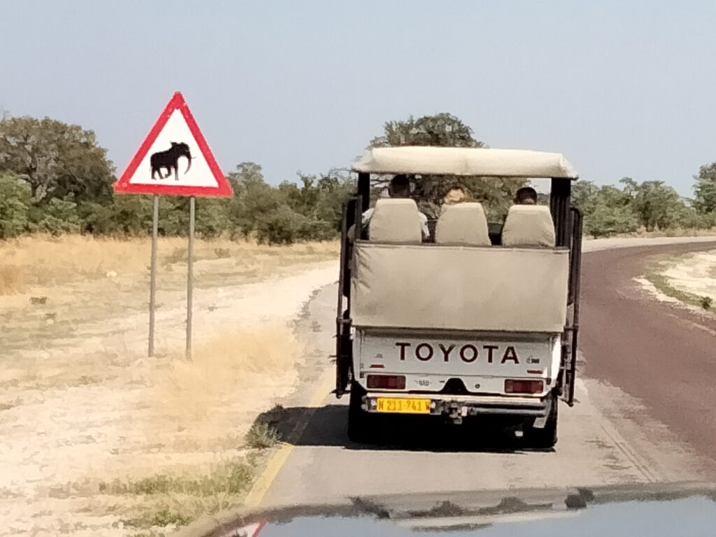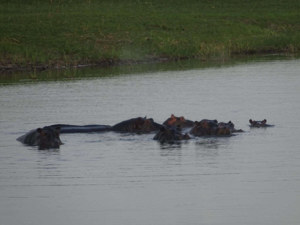 Auf unsere eigene Anregung hin brachen wir heute früh (= kalt, eigtl. mehr Tiere) um 6 Uhr zu einer Pirschfahrt im Mudumi-NP auf. Sie sollte drei Stunden dauern und uns eigtl. die Sichtung von verschiedenen Tieren ermöglichen. Heute hat uns definitiv unser Tierglück verlassen: Wir haben nur zwei Giraffen, ein Paar Hippos, einige Vögel, einen kleinen Affen, ein Rudel Paviane, Impalas und Antilopen, einige Kudus und ein laufendes Kroko gesehen. Das ist eine sehr kleine Ausbeute im Verhältnis zu unseren sonstigen Sichtungen! Im Anschluss gab es Brunch, wie immer eher knapp kalkuliert. Die nun folgende Pause bis 17 Uhr nutzte ich zum Aktualisieren des Blogs (ohne WLAN, nur offline) und Ausruhen.