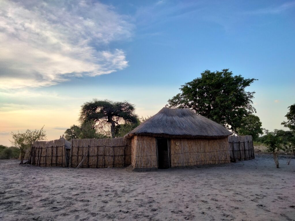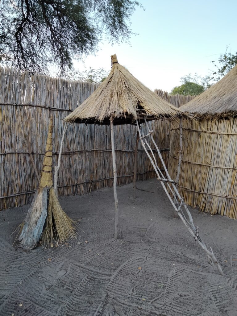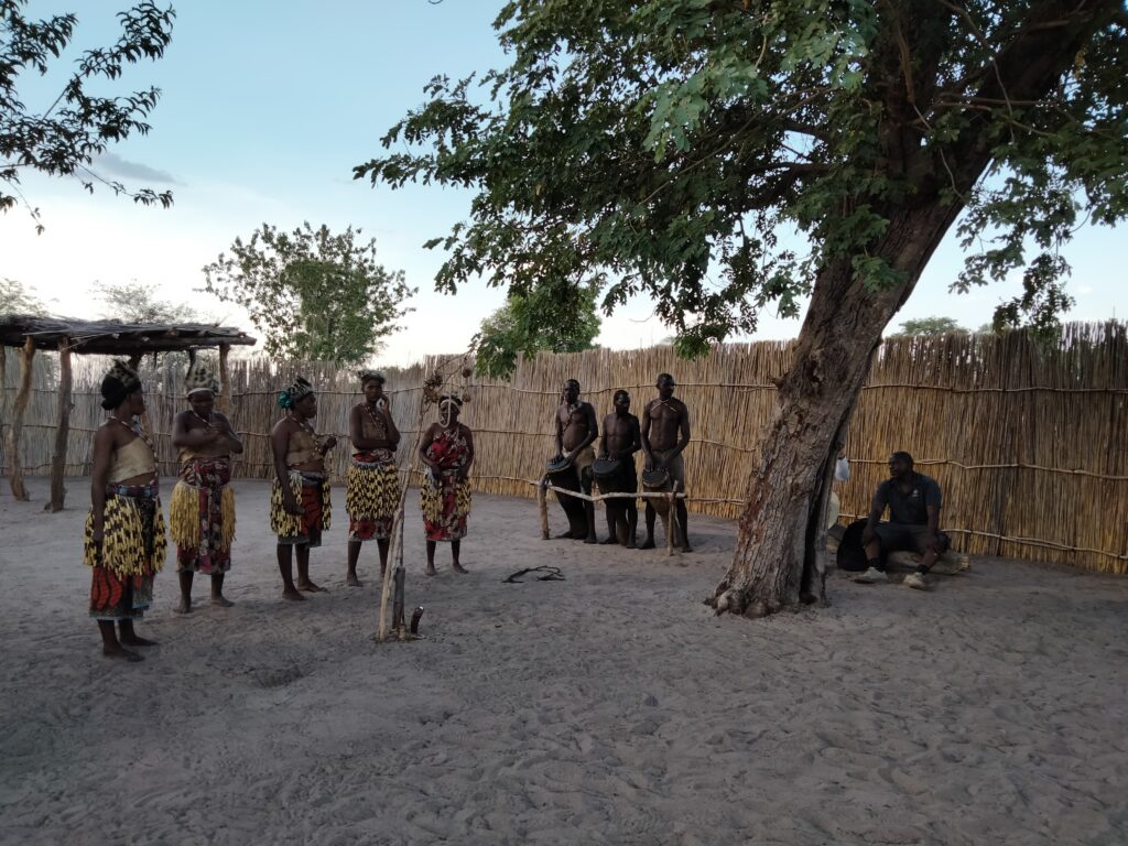 Um 17 Uhr fuhr uns Lawrence ins nahegelegene Dorf, in dem Einheimische in Form von Reenactment das traditionelle Leben und die dazugehörigen Bräuche nachspielen und erklären. Es wurde Jagen, Werkzeugherstellung, Heilung und Hüttenausstattung vorgeführt. Besonders ausführlich wurde getanzt und musiziert, wobei der „Medizinmann“ oder die „Medizinfrau“ besondere Aufgaben ausführten. Wir saßen drumherum, wobei die meisten befürchteten, in den Tanz einbezogen zu werden. Was selbstverständlich der Plan der Einheimischen war und mit Deutschen nur so lala funktioniert. Aber einige waren offen genug…