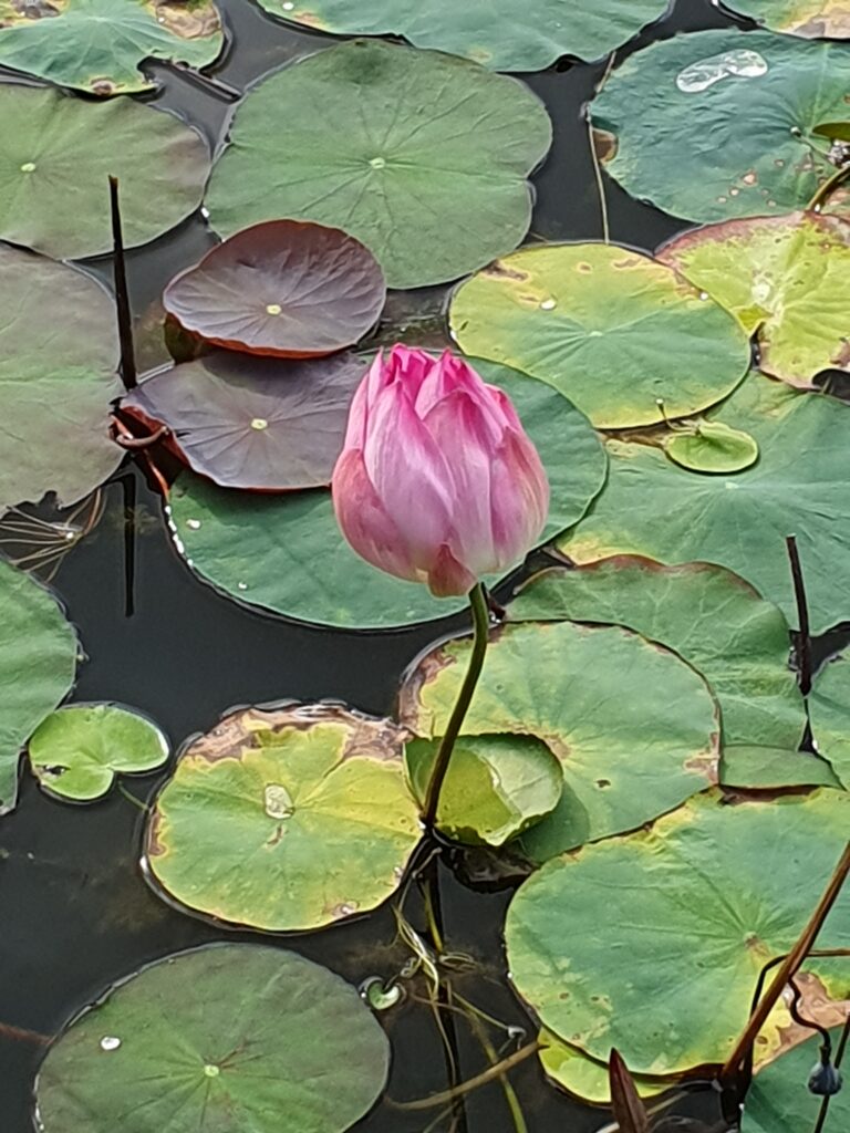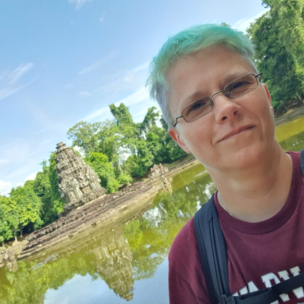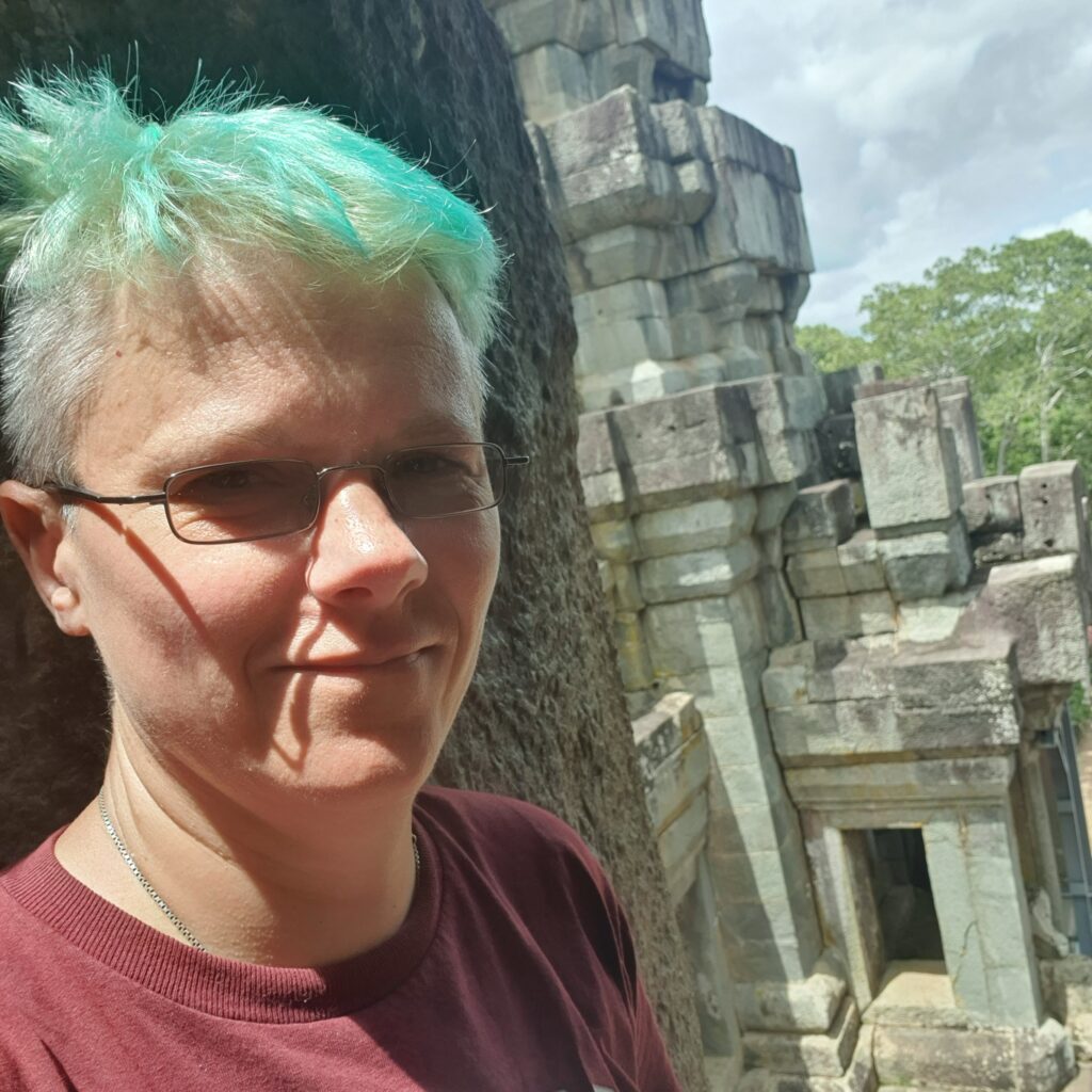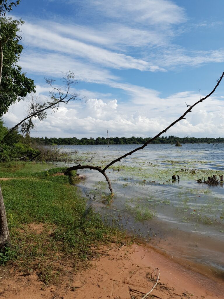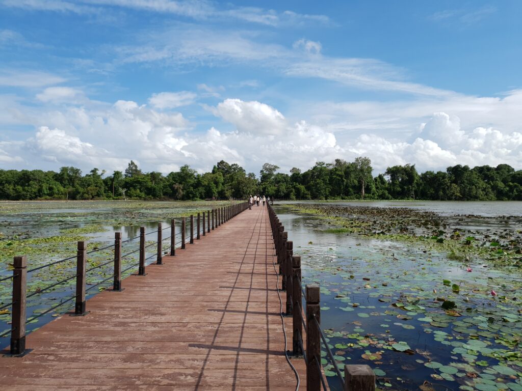 Spätes Auschecken und langes Überlegen, was tun. Das bezahlte 3-Tagesticket für die Anlagen Angkor Wat zog: Mit Grab ein Tuktuk gerufen und zum ersten Tempel geordert (Banteay Kdei). Der war gar nicht so toll, aber dafür hatte ich meinen Fahrer für die nächsten Tempel und das Herumfahren gefunden. Wir steuerten fünf weitere, durchaus verschiedene Tempel an, von denen ich schon zwei kannte, bei denen ich nur nochmal Fotos mit etwas blauem Himmel machen wollte. Insgesamt waren wir etwa 4,5 h unterwegs. Bei einem Tempel (Pre Rup) führte ich auf der obersten Terrasse ein längeres Gespräch mit Noch-in-Deutschland S. Sehr erquickend und sonnenbruzelig. Dann ging es weiter mit meinem Tuktuk zu den anderen Tempeln, zuletzt zu einem ganz anders artigen, der auf einer Insel in einem Teich liegt. Anschließend kehrten wir nach Siem Reap zurück, wo es gerade wieder – typisch für spät nachmittags – zu schütten begann. Ich stellte mich im Wat Bo unter. Zwei kurze, heftige Duschen später lief ich zum Markt und kehrte noch nicht richtig hungrig, aber egal, in ein lokales Restaurant ein. Wieder zuviel (Reispapierrollen und eine Curry-Nudelsuppe), also ließ ich die Rollen als Take-away einpacken. Dann zurück zum Hotel am Supermarkt vorbeigehend, um dort Klamotten zu wechseln und die Zeit bis zum Aufbruch abzuwarten.
