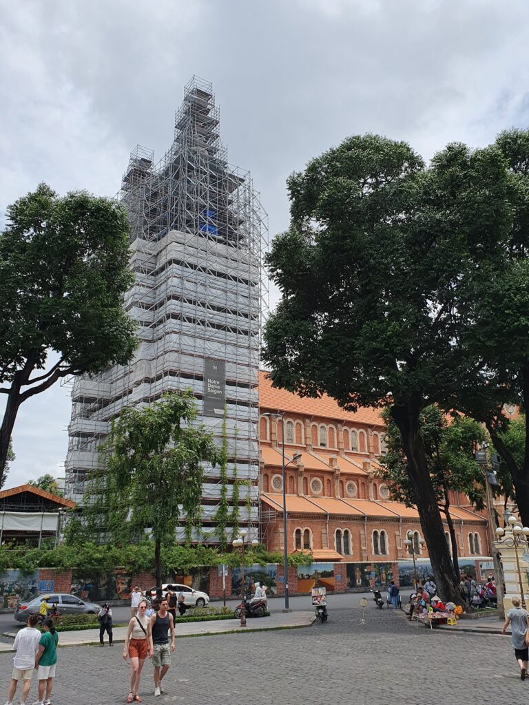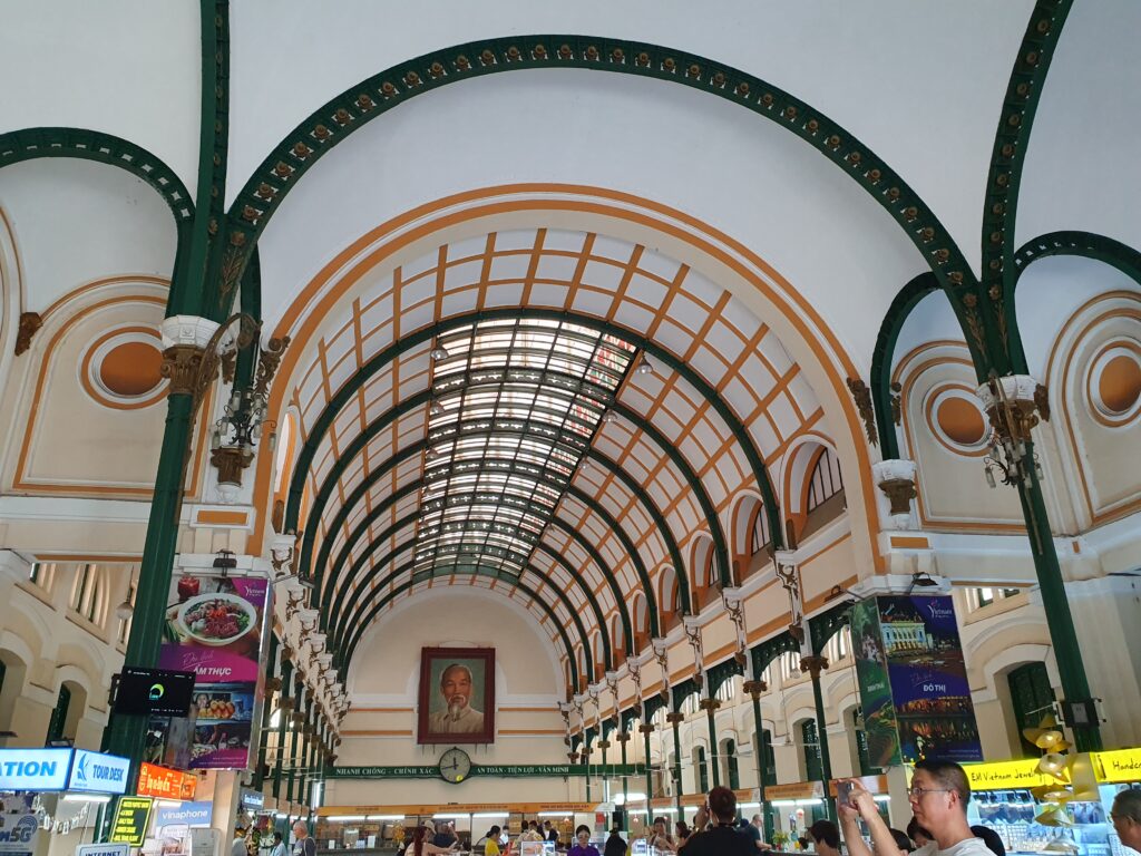 Heute ging es nach einem knappen und insgesamt eher hinderlichen Frühstück – gesundheitliche Nachwirkung oder einfach eh angegriffener Magen-Darm-Bereich – um 8.30 im Eilschritt zum Treffpunkt für eine free walking tour. Kurz vor 9 Uhr kamen wir bereits schweißüberströmt am Bitexco Finance Tower an. Kurz danach traf „Joseph“ (Van), der Guide, ein. Ausgestattet mit einem Tablet für Bilder und einem Mikro/Lautsprecher führte er uns nach einer sehr guten historischen Einführung 3h lang durch das alte und neue Saigon im Zentrum. Es standen alle wichtigen Punkte, aber auch abseitsgelegene Spots wie Mini-Cafes o.ä. in ehemaligen (heruntergekommenen, i.e. szenigen) Wohngebäuden auf dem Programm. Franzosen, Chinesen und manchmal auch Vietnamesen kamen viel vor…