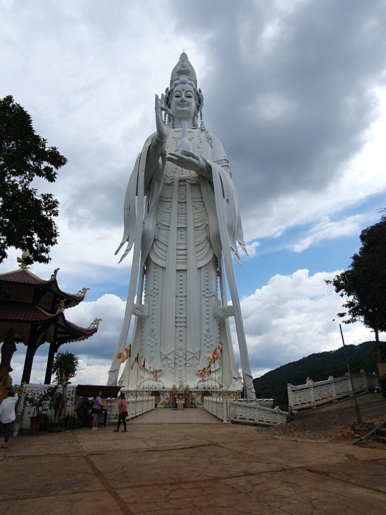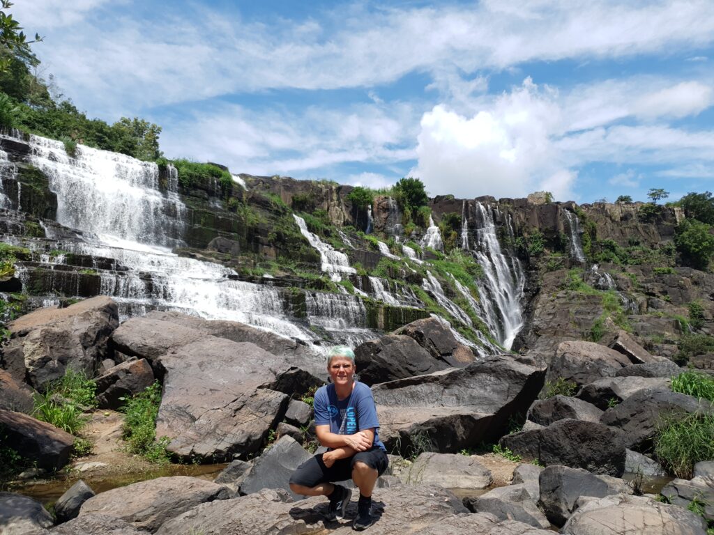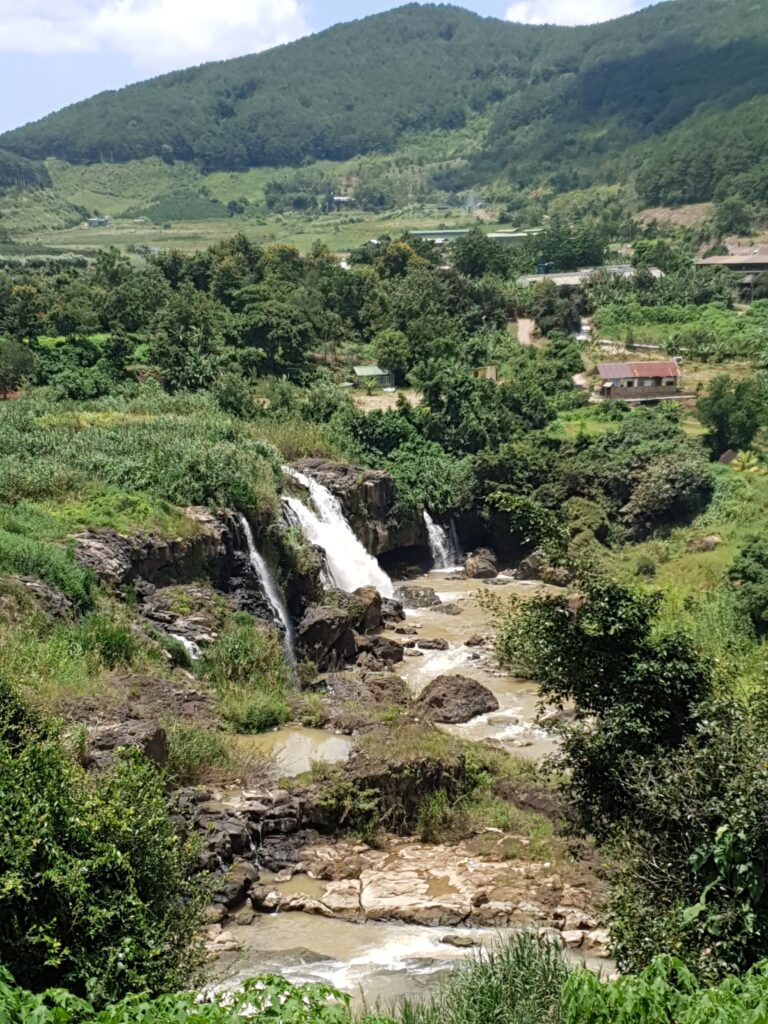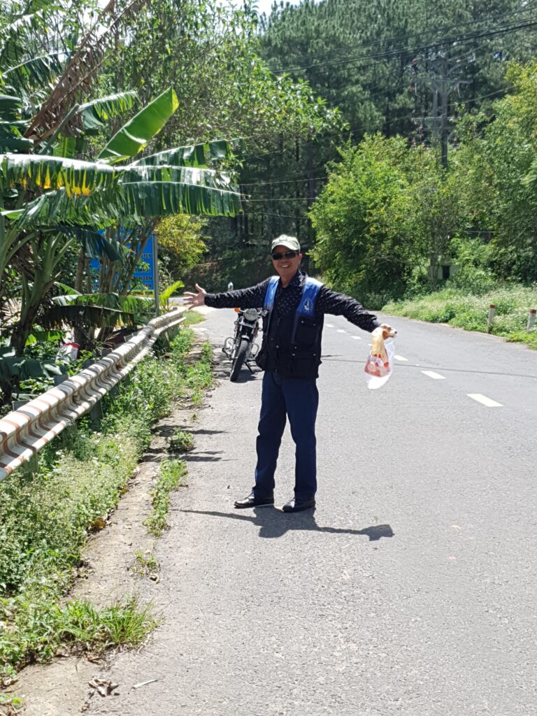 Frühes Frühstück ausschließlich mit Vietnamesen. Heute verbringen wir den Tag getrennt. Zuerst bringe ich mal meine Wäsche weg, hole mir frisches Wasser und beginne gerade mit einem Hörbuch, als mich ein älterer Mann anspricht. Er gehört(e) zu den easyrider von Da Lat (http://dalat-easyrider.com/), von denen ich gelesen hatte. Wir wurden schnell handelseinig und auf ging es als Socius durch die Landschaft rund um Da Lat. Mit Mittagessen und vielen kleinen Stops waren wir fast 7h unterwegs. Mit der Zeit wurde ich etwas entspannter, aber die fehlende Knautschzone kann ich vor allem dann nicht vergessen, wenn uns ein Monster-LKW überholt oder wir tiefenentspannt auf der falschen Straßenseite in eine Straße hineinfahren. Aber Hung ist wirklich ein guter, erfahrener Fahrer, der auch mit Angsthasen wie mit mir gelassen umgeht. Er spricht passables Englisch, für mich trotzdem sehr schwierig. Zwischendrin hält er auch gerne mal an und erklärt, welche Pflanzen man da eigentlich sieht…