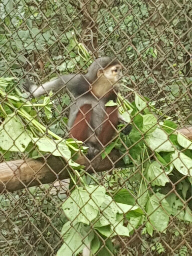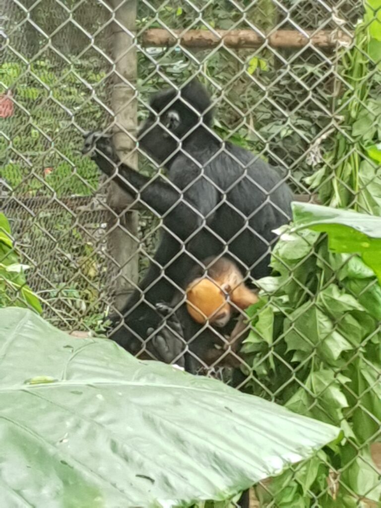 Nach einrm allgemeinen Intro besuchen wir zunächst das Primaten-Center. Die Faulaffen schlafen (nachtaktive Loris), die Lemuren und Gibbons sind sehr aktiv. Hier mpssen wir alle Masken tragen, damit wir keine Keime auf die Affen übertragen. Nun ja, eigentlich bin ich dafür etwas weit von den Affen entfernt. (?)