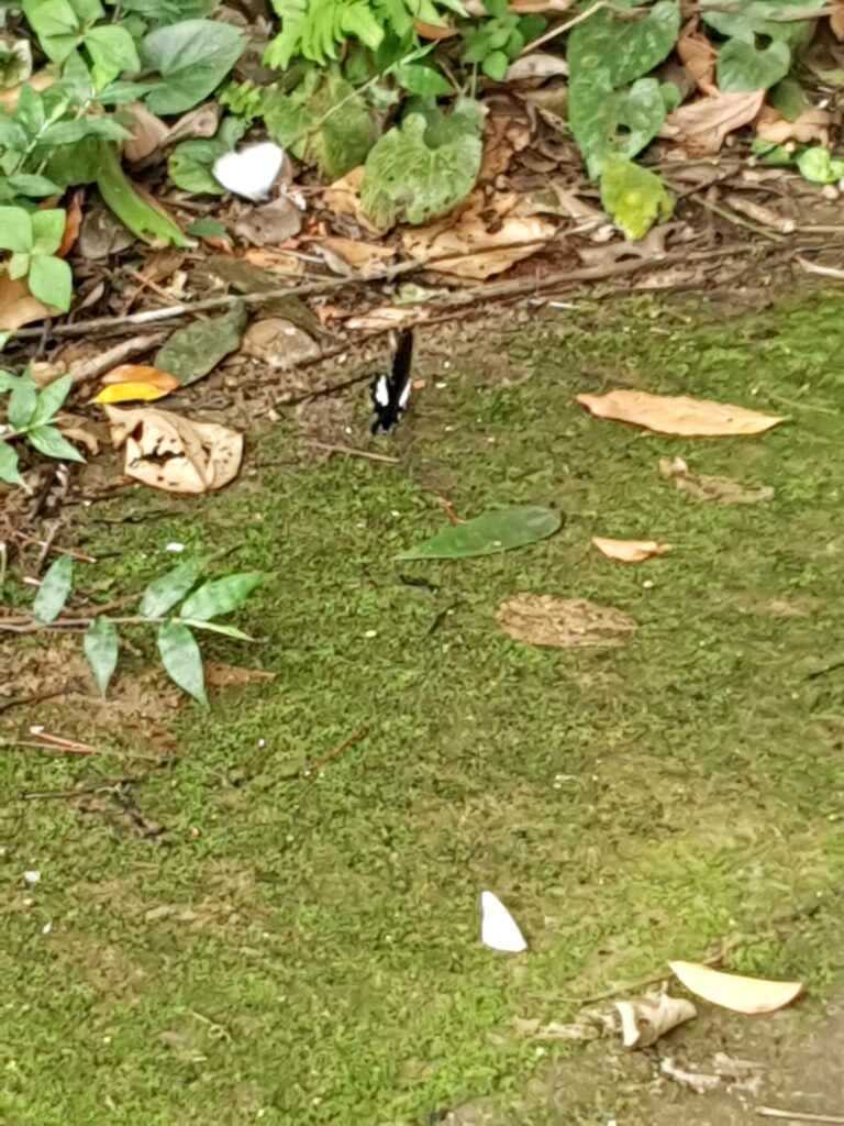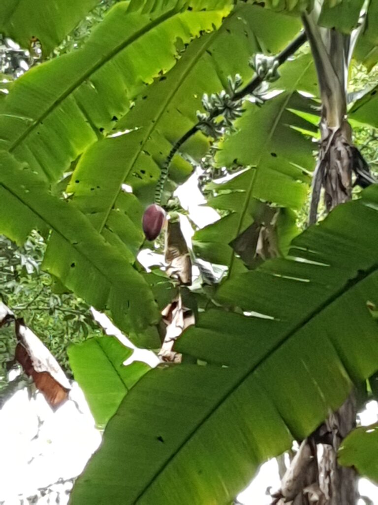 Nun stand lokales Essen auf dem Programm, naja… Hier gibt es kein Netz und kaum Strom, alles sehr weit weg von städtischer Bequemlichkeit. Im Anschluss machtrn wir uns zu einer kleinen Dschungelwanderung auf. Wir wurden vor verdchiedenen Arten von Blutegeln (leeches) gewarnt, die dank der Regenzeit sehr aktiv seien und nur auf Säugetiere und deren Blut warteten. Daher wären auch lange Hosen angebracht gewesen. Zu dumm, dass so etwas nicht auf der Tourseite kommuniziert wird. Wie dem auch sri, ich hatte zumindest meine Schaftschuhe an, was sich als Segen erwies. Bei mir fand sich nämlich während der ganzen Wanderung keines dieser häßlichen Tiere, während die anderen immer wieder Entfernungsaktionen starten mussten. Allerdings trat ich auch im Stehen auf der Stelle, um gar nicht richtig stillzustehen. Diese kurze Wanderung wirklich mitten durch den Dschungel ohne gut erkennbaren Pfad verdeutlichte mir vor allem, wie furchtbar die Kriege hier gewesen sein müssen. Man bekommt kaum Luft wegen der extremen Luftfeuchtigkeit, alles wirkt eng, es gibt tagsüber zwar Licht, aber keine Orientierungshilfe, es raschelt und zirpt überall, die Blutegel und weitere wenig angenehme Tiere wie Schlangen und Spinnen warten nur auf die Eindringlinge. Es gibt nahezu keine trockenen Stellen oder erkennbar Essbares. Für ursorpngliche Völker mag dieser Dschungel einmal bewohnbar gewesen sein, aber für Stadtmenschen ist er ein gewaltiger Alptraum.