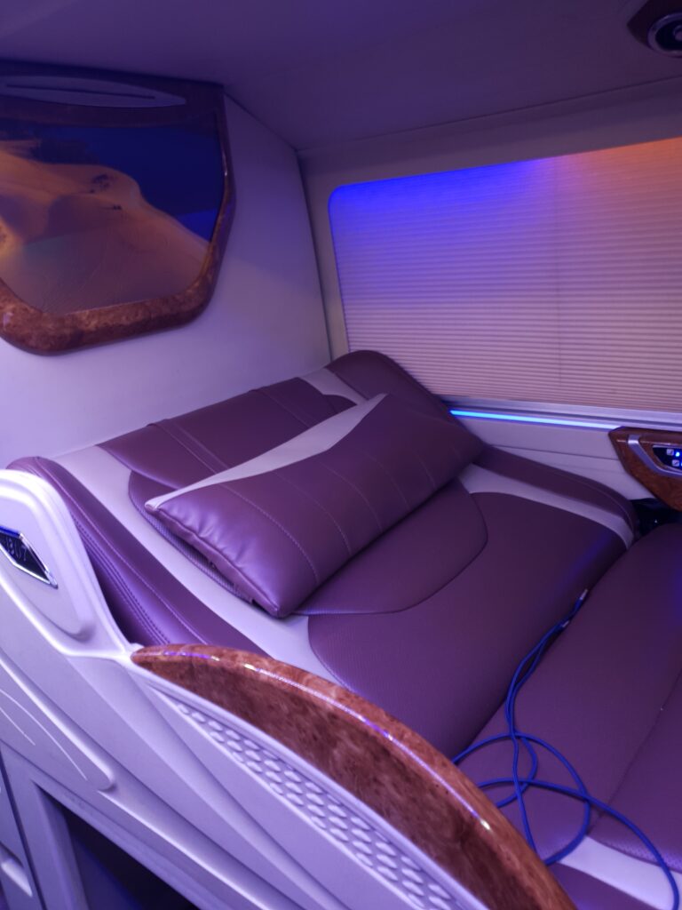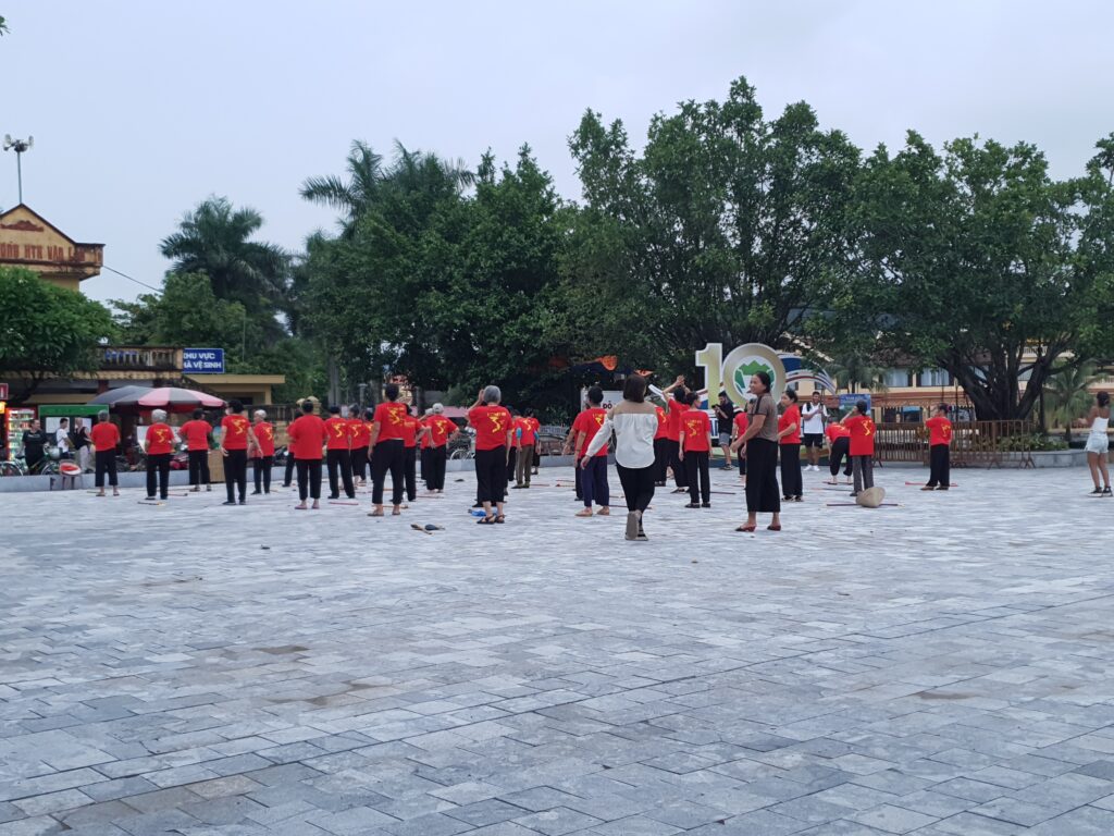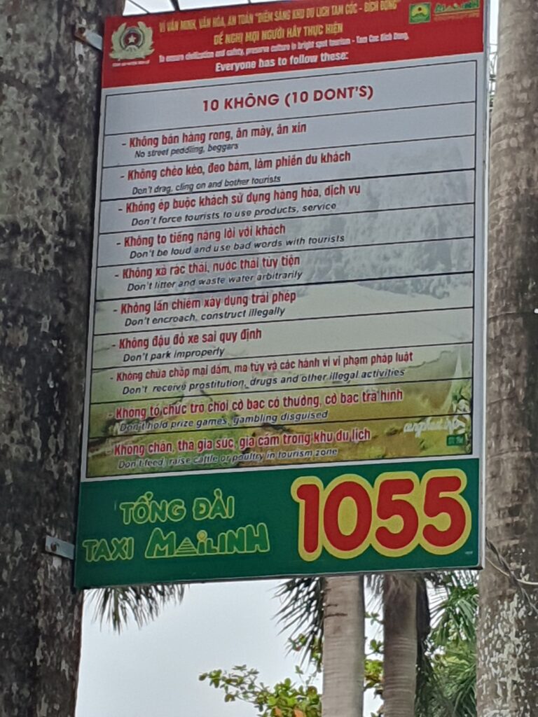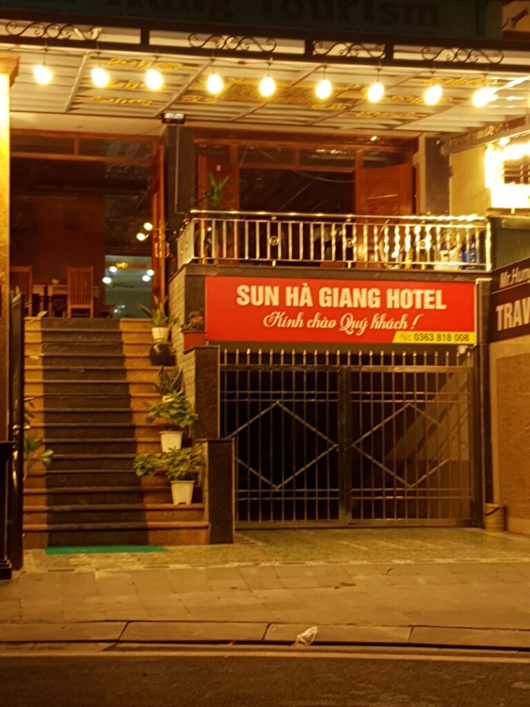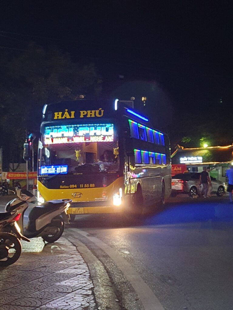 Nach der Wanderung mussten wir leider schon wieder den Rückwegantreten, weil 2 Leute aus der Gruppe (insgesamt 6) noch am gleichen Tag bis nach Hanoi zurückfahren mussten. Daher waren wir schon gegen 16.30 wieder in Tam Coc und schwitzen am See sitzend so vor uns hin. Dort beobachteten wir auch am frühen Abend erneut die älteren Frauen des Ortes, die sich auf dem Platz zu „vietnamesischem Fitness/Aerobic“ trafen. Gegen sieben tingelten wir zum Hotel, zogen uns um, gingen essen und warteten auf den Sleeper-Bus nach Ha Giang. Pünktlich ging es um 21.40 los, ich eroberte gleich vorn oben eine freie Kabine. 8h Busfahrt inkl. vieler Kurven sollten es werden, doch es sei schon verraten, der Bus war zwei Stunden schneller. Wir wurden gegen 3.30 Uhr vor unserem Hotel abgesetzt und waren hocherfreut, dass wir nicht nur reinkamen, sondern auch ein Mehrbettzimmer ergattern konnten, um noch weiterschlafen zu können. 🙂