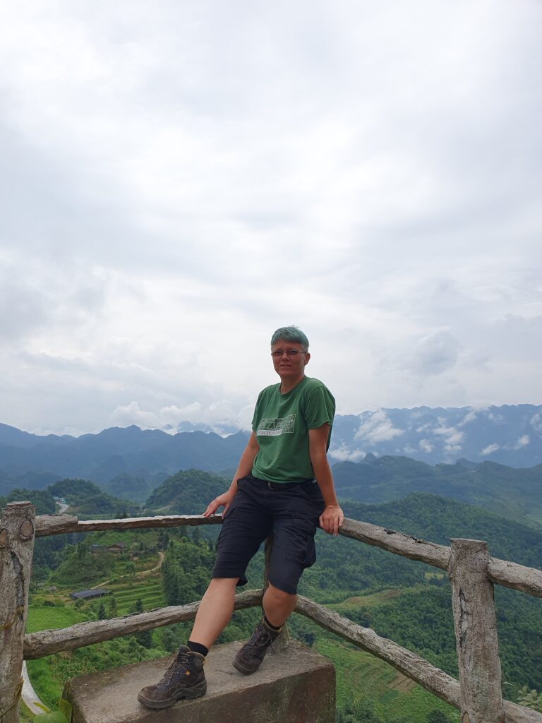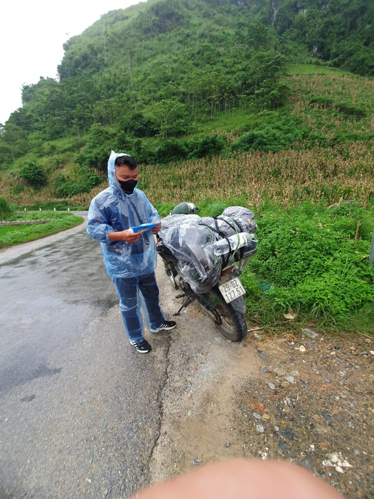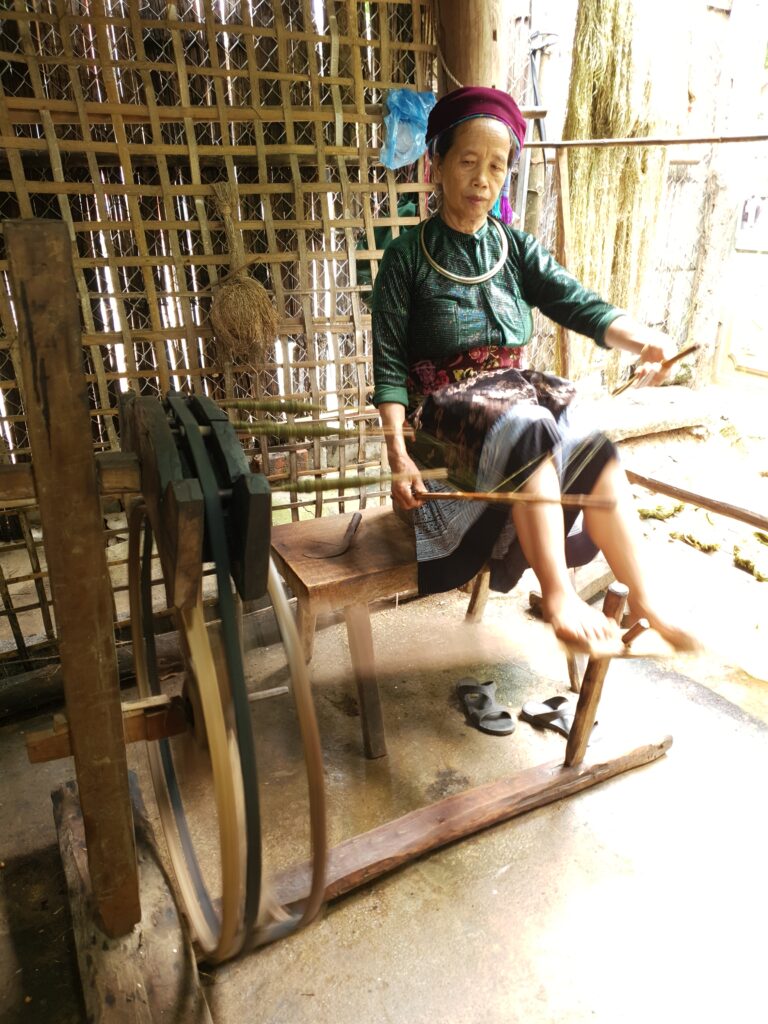 Unterwegs mit den Easyriders Ket und Mel (https://www.easyridersvietnam.com/tour/easy-rider-ha-giang-loop-tour/), Start um kurz nach 9 Uhr, nachdem etwa 25 min alles gut verpackt und verschnürt werden musste. Mehrere Stops (u.a. bei einer Dorfkooprative, die Stoffherstellung vorführt), lokales (preiswertes) Essen, ein Besuch im Dorf einer ethnischen Minorität (H’Mong, ursprünglich aus China), ein kleiner Spaziergang und abends gemeinsam essen gehen – leider ohne Sonnenschein. Insgesamt saßen wir von kurz nach 9 bis 17.30 Uhr auf dem Motorrad, abzüglich etwa einer Stunde Mittagspause und kurzer Stops. Die Distanz beträgt – so wie wir gefahren sind, nämlich über durchaus sehr kleine Nebenstraßen – etwa 150km. Das Mitfahren im wahrsten Sinne des Wortes, d.h das Achten auf die Straße, um (zwar meist geschickt umfahrene) Löcher, Engpässe oder entgegenkommende Fahrzeuge zu antizipieren, schlaucht ganz schön. Dann noch die vielen Eindrücke rechts und links … Ebenfalls anstrengend ist das Sitzen in der Klammeraffenposition, insbesondere für den verlängerten Rücken und die Oberschenkelinnenseiten. Da scheint einiges etwas wund bzw. überanstrengt zu sein. Ich freue mich auf eine lange Nacht der Erholung!