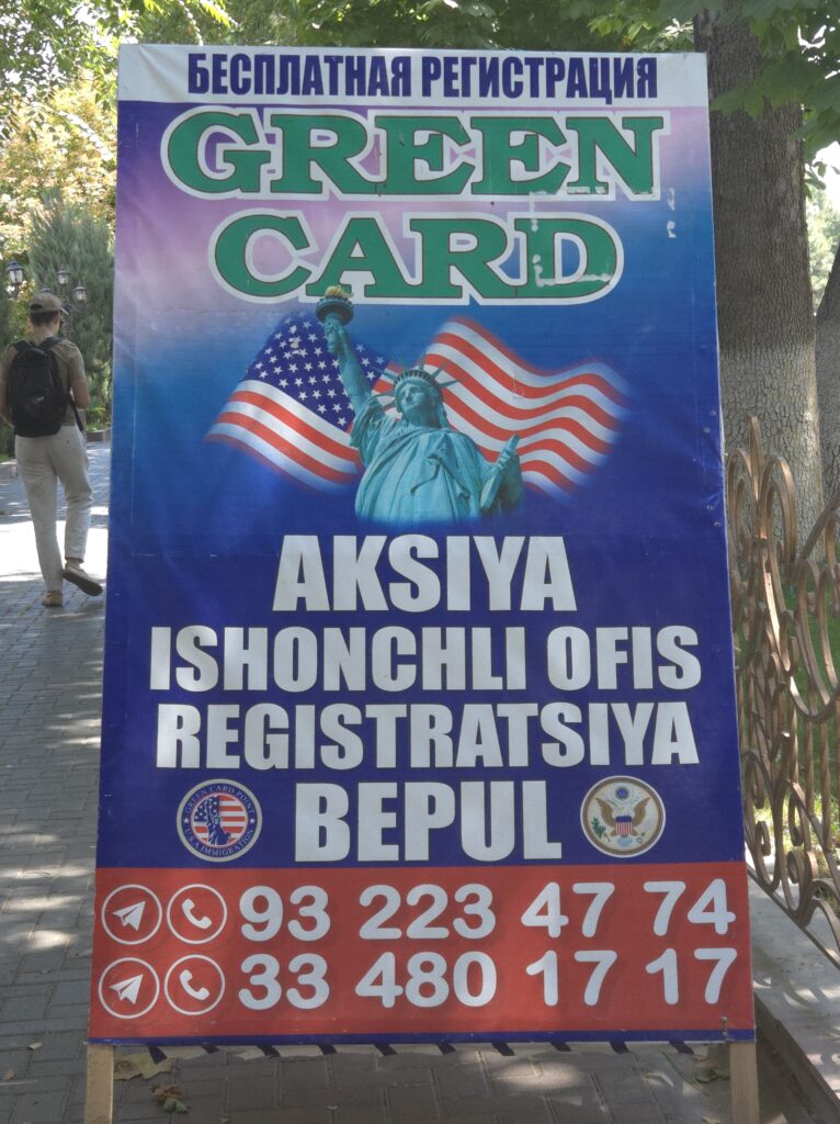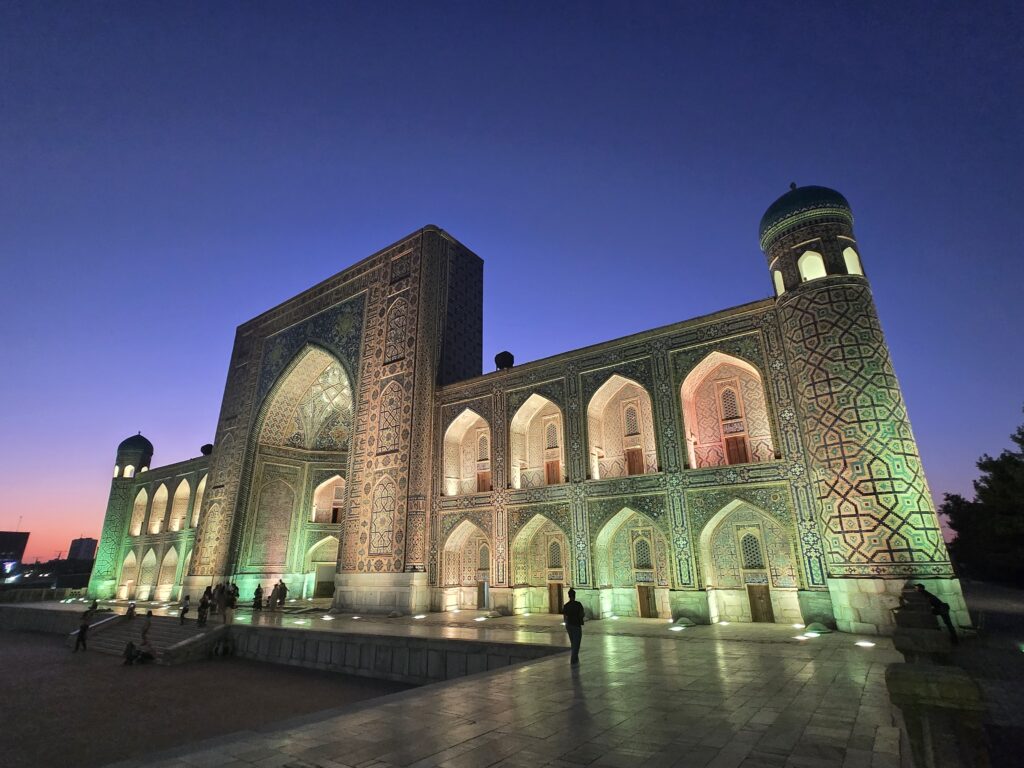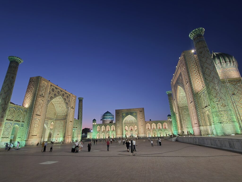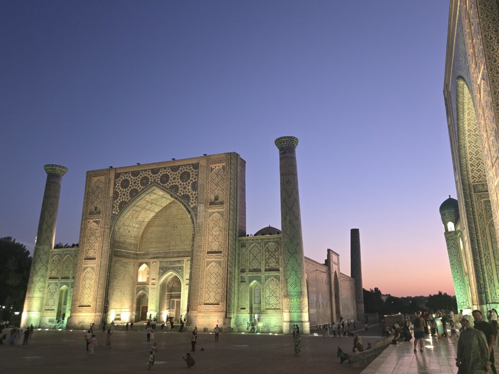 Es gäbe viel zu erzählen, aber das schaffe ich jetzt nicht alles. Daher erstmal nur reminder für mich: Kanäle an den Straßen als Fremdenfallen, Tischsitten jüngerer Touris, Ampeln und die Grünzeiten, Samarkands Ruinen (Zerfall über Zeit seit Untergang des Timuridenreichs) und Wiederentdeckung + Aufbau durch Sowjets, Dummheit der Kulturtouris (die nehmen doch Geld ein, warum ist das nicht alles schon viel weiter restauriert etc.)