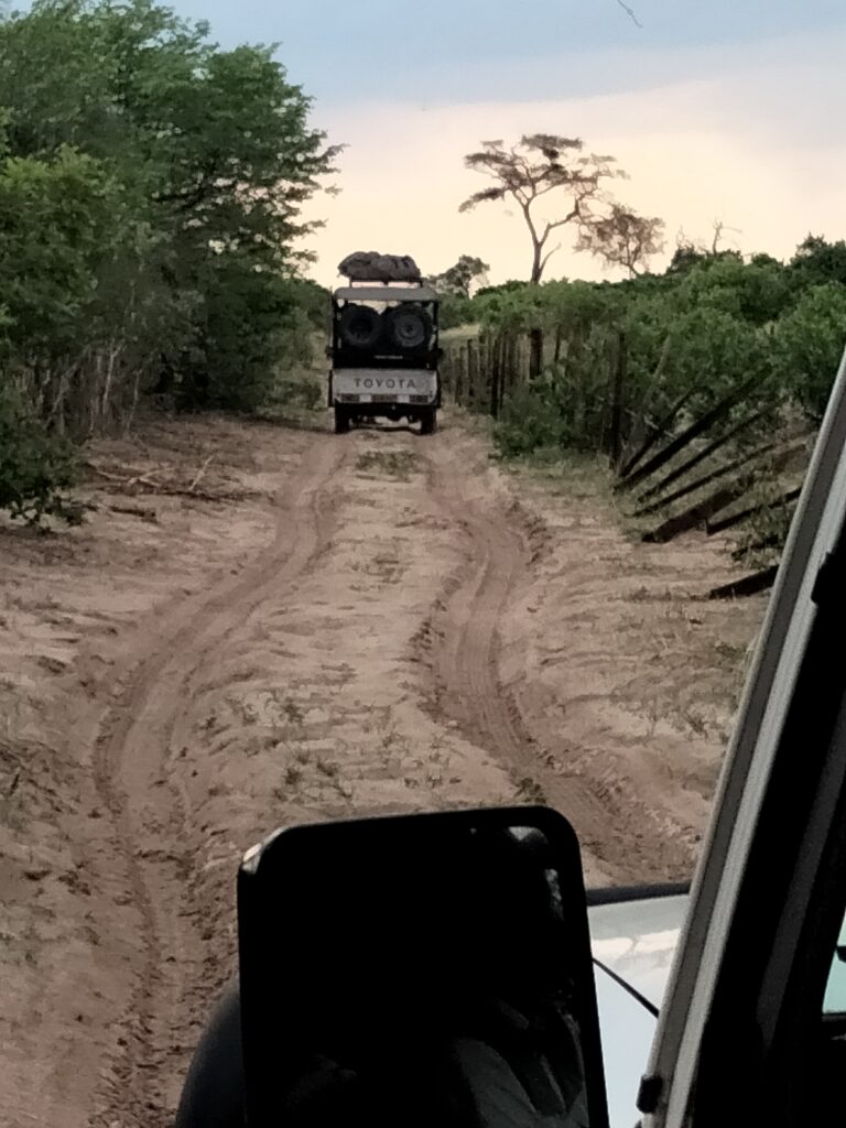 4.50 Uhr Aufstehen, 5.15 Buschtaxi, 5.30 Uhr Abfahrt, um gleich darauf am Zaun wieder auf die Löwen zu treffen, die zwei neue Opfer (Büffel) geschlagen hatten. Zweimal durften wir an dem Tag Bekanntschaft mit je einem Elefanten schließen, der kurz davor stand – aus nachvollziehbaren Gründen – uns in unserer Jeep-Box anzugreifen.
