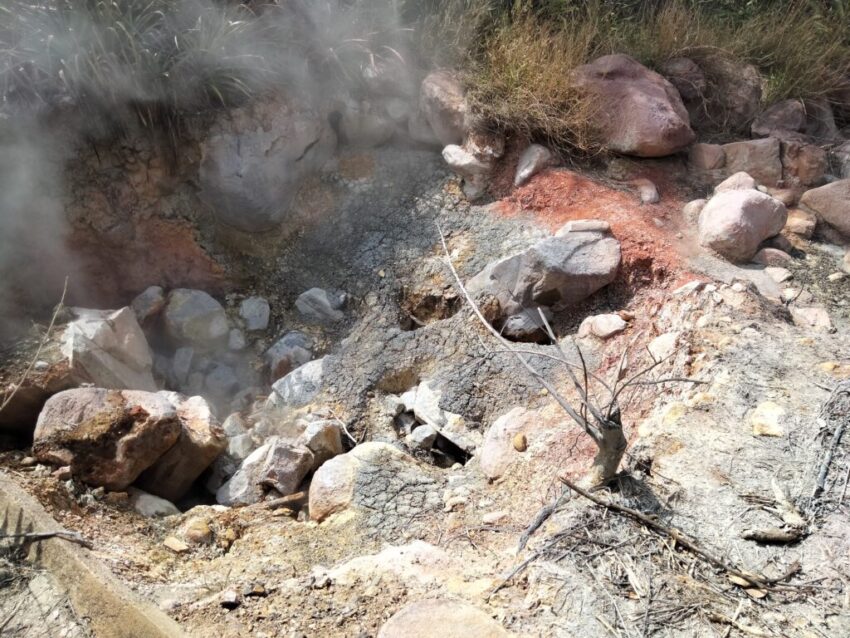 Es ging früh los (8 Uhr), aber eigentlich empfindet das kaum noch einer als früh. Zwei Wanderungen standen auf dem Programm: 2x 5 km hin zu und zurück von einem Wasserfall, (wie immer) kurze Pause, 4-5 km Rundwanderweg entlang der heißen, schlammigen oder nach Schwefel riechenden Quellen und Blubberlöcher.