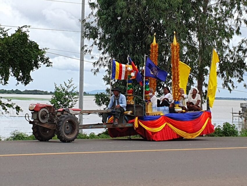 7.50 Uhr Abmarsch mit Tuktuk zum Busabfahrtsort (jedes Unternehmen hat seinen eigenen Ort, nicht leicht, sich hier zurecht zu finden). Das Vehikel ist ein Van mit Air-Con und außer uns nur vier weiteren Mitfahrern. Wir sitzen vorn, später tauscht Angelika nach hinten für mehr Beinfreiheit. Zwei Stops inklusive erreichen wir bei schüttendem Regen Siem Reap….